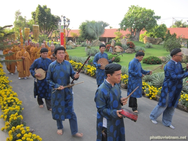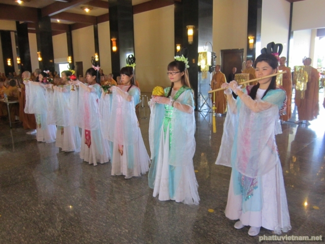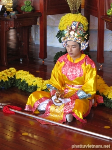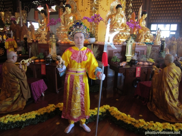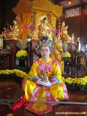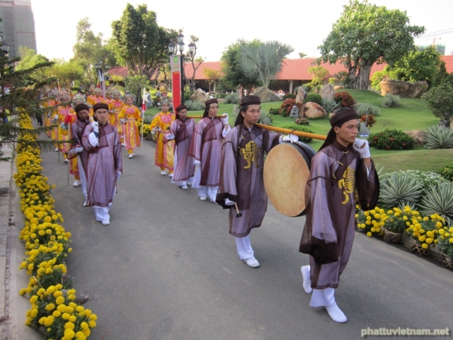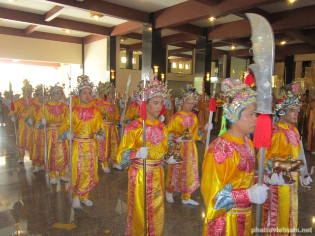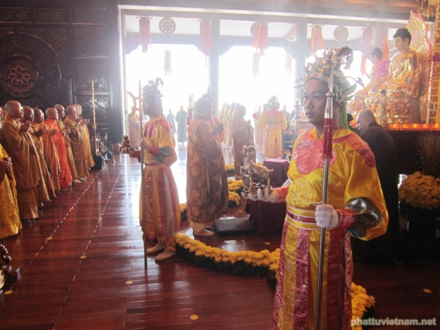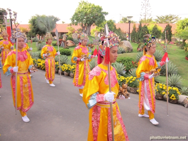 Việc trang hoàng để lại ấn tượng đặc biệt cho người xem tại pháp hội đó là các đội cung nghinh, đoàn âm công, hóa trang chư Thiện thần ở các cõi trời như các quan đại thần, tể tướng, 12 vị đại tướng Dược Xoa… với đa dạng các pháp khí linh kỳ như phướn lọng, âm nhạc, chuông, trống, bảng, khánh, tràng hạt, kèn, sáo, tích trượng… cùng hòa nhịp, ngân vang khắp khu vực tổ chức đại lễ.