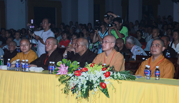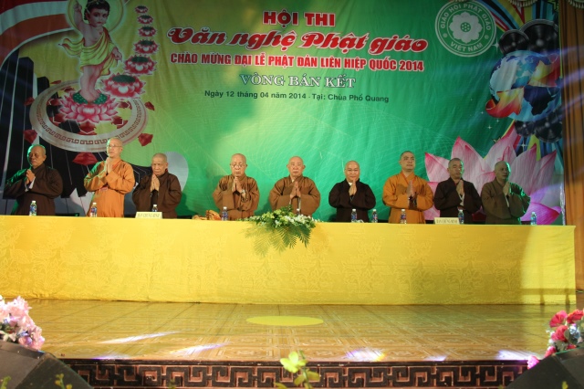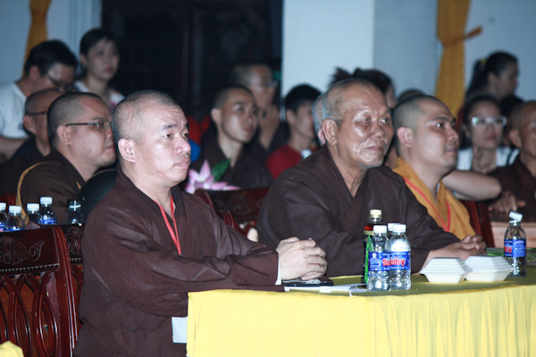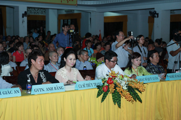 Về tham dự đêm văn nghệ vòng thi bán kết có HT. Thích Tịnh Hạnh, HT. Thích Như Tín – Đồng Phó BTS GHPGVN Tp. HCM; TT.Thích Nhật Từ – Trưởng Ban văn hóa PG TP.HCM, TT. Thích Chơn Không, Phó Trưởng ban TT kiêm Chánh Thư ký Ban HDPT T.Ư kiêm phó ban tổ chức hội thi, ĐĐ.Thích Nhật Thiện – ĐĐ. Thích Phước Tiến, ĐĐ.Thích Lệ Minh, ĐĐ. Thích Phước Huệ – đồng Phó trưởng Ban văn hóa kiêm Phó ban tổ chức hội thi, cùng tất cả các chư Tôn đức Tăng Ni và các Phật tử cùng có mặt tham dự.