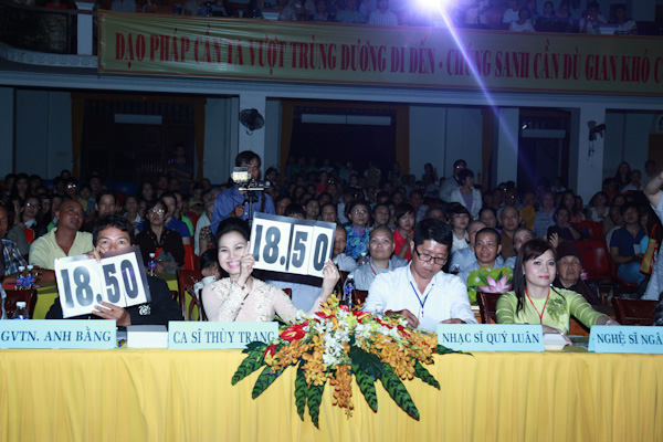 Mặc dù không phải là các ca sĩ chuyên nghiệp, nhưng với lòng quyết tâm, lòng tôn kính bậc đấng giác ngộ, các thí sinh đã thực hiện các tiết mục bằng cả trái tim và bầu nhiệt huyết của người Phật tử, đã làm rung động lòng người, ai cũng có cảm giác như đang xem một đêm văn nghệ do các diễn viên chuyên nghiệp biểu diễn, với rất nhiều tiết mục đạt chất lượng cao. Chỉ đêm đầu tiên thôi mà cả hội trường phía dưới Nhà văn hóa chùa Phổ Quang đã kín chỗ cộng với sự cổ vũ nhiệt tình của các chư đại Tôn đức, các Phật tử và cả các diễn viên đã để lại một ấn tượng khó quên. Có những tiết mục múa, những trích đoạn được dàn dựng rất công phu và chuyên nghiệp như hoạt cảnh “Phật Hoàng Trần Nhân Tông” của Quận Phú Nhuận chỉ mới gần 20 phút thôi nhưng đã lược lại cuộc đời của một vị vua, một nhà tu hành, một Phật Hoàng với thời vàng son giữ nước và trị nước của Người. Tiết mục ” Lậy mẹ từ bi ” biểu diễn là một ca sĩ nhí của cô bé 8 tuổi với mái tóc thật, dài gần tới gót chân trong trang phục Bồ tát quan Âm đã làm cho cả hội trường không ngớt những đợt vỗ tay, nhất là cô bé đã hát rất thành công “Chú Đại Bi” trên nền nhạc phổ mới rất hay, trong khi chỉ là một cô bé 8 tuổi chỉ trong 12 ngày đã thuộc Chú Đại Bi. Ban giám khảo đã dành cho cô bé với số điểm trung bình gần như tuyệt đối 18.96.