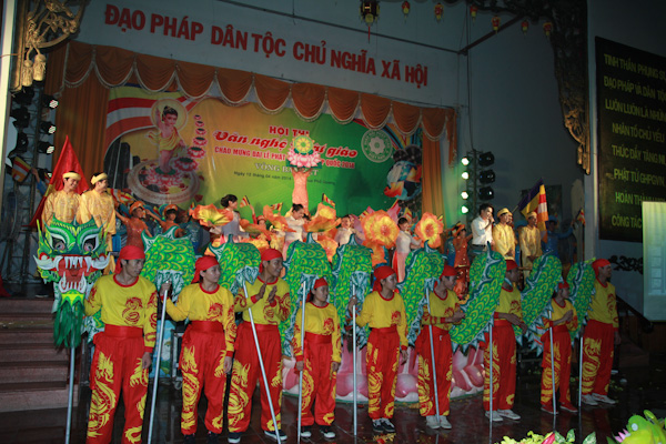 Ban tổ chức đã tổ chức hội thi văn nghệ cho các Phật tử mang tính quy củ, bài bản và khá chuyên nghiệp.