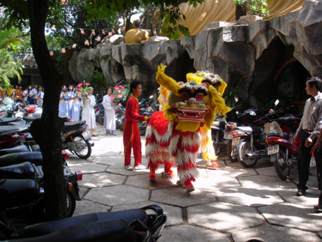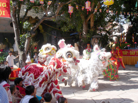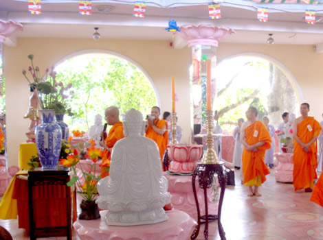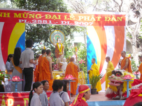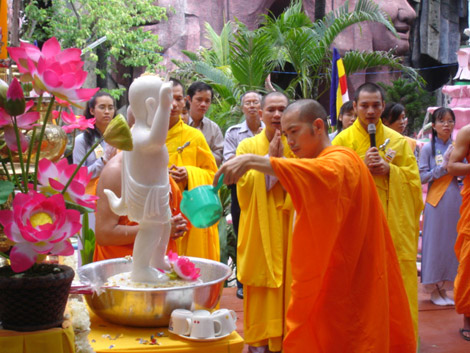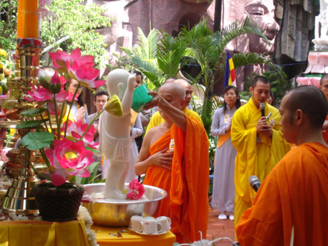 Mở đầu cho buổi lễ là màn trình diễn đầy ngoạn mục của đoàn múa Lân Sư Rồng, nối tiếp chương trình là phần dẫn thỉnh với sự chứng minh của Thượng toạ Thích Thiện Chiếu và đông đảo chư Tăng (ĐĐ. Thích Quang Thạnh, ĐĐ. Thích Quang Hạnh….). Kế đến là phần Bạch Phật, Bạch tổ, sau đó là buổi lễ tắm Phật. Sau khi thực hiện nghi lễ tắm Phật, Phật tử đã được nghe một bài pháp ngắn về tiểu sử của đức Thế Tôn, tụng kinh tiểu sử đức Phật. Buổi lễ đã hoàn mãn tốt đẹp.
