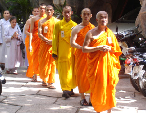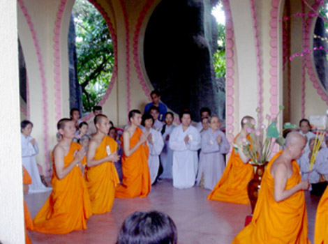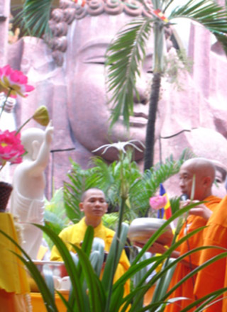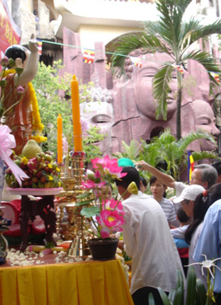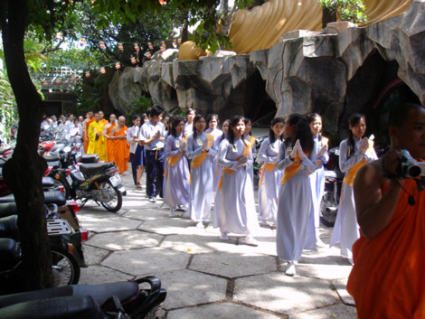 Buổi lễ diễn ra trong bầu không khí náo nức của hàng vạn người con Phật, tuy giản dị mà đầy trang nghiêm theo nghi thức cổ truyền Nam Tông.