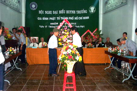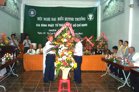 Cố vấn giáo hạnh GĐPT Chánh Thọ tặng hoa cho Hội nghị