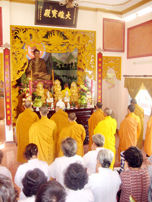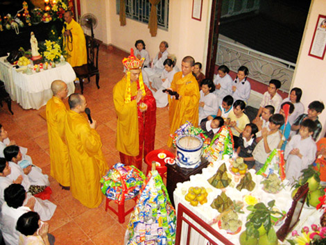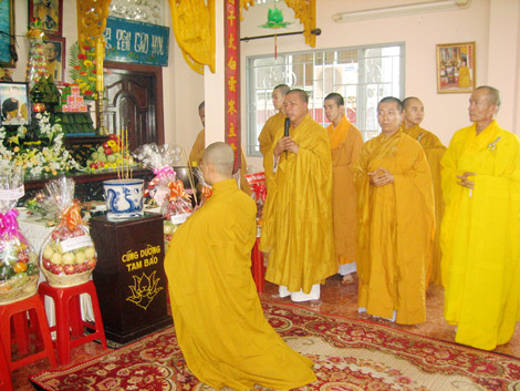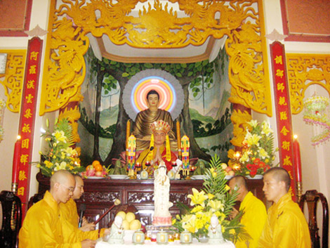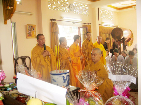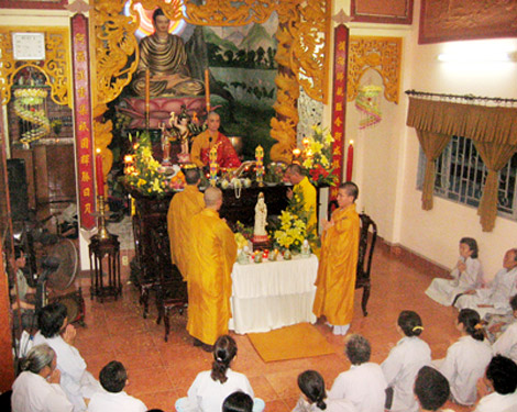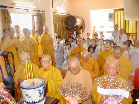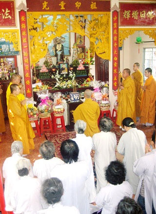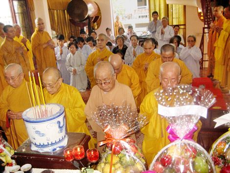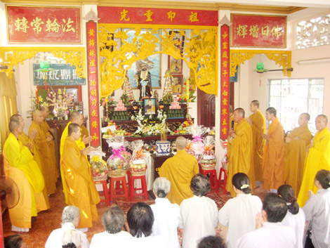ĐĐ. Thích Lệ Minh (Thư ký Ban Đại Diện Phật Giáo Quận 5) đại lao cho HT.Thích Nhật Quang đương vi trụ trì cung tuyên tiểu sử Thánh tử đạo Thích Thiện Mỹ. Sau phần lễ, chư tôn đức đã dâng hương tưởng niệm nơi Tổ đường và dự lễ cúng dường trai Tăng tại bản tự.