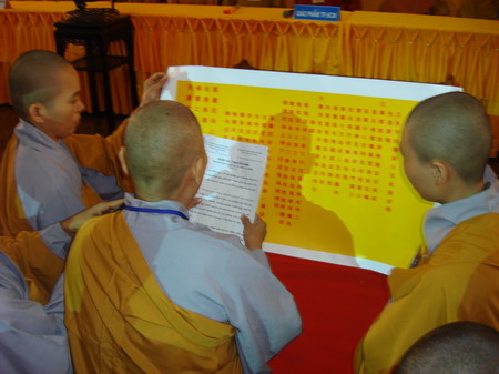 Hôm qua, Đại giới đàn Huệ Lưu 2008 đã diễn ra cuộc thi sát hoạch Giới tử do HT. Thích Trí Quảng làm Chánh chủ khảo.