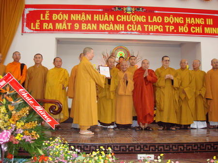HT. Thích Trí Quảng thay mặt Thành hội đón nhận Huân chương Lao động hạng ba do Chủ tịch nuớc quyết định trao tặng. Trong nhiệm kỳ vừa qua (2002-2006), THPG TP.HCM đã đạt được được nhiều thành tích xuất sắc trong công cuộc xây dựng và phát huy truyền thống tốt đẹp của Phật giáo. Cùng với sự phát triển của xã hội, Thành hội Phật giáo TP. HCM luôn đồng hành cùng với dân tộc, đem lại nhiều lợi ích cho đất nước.