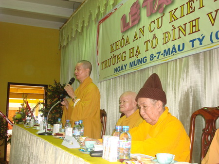 Thay mặt chư Tôn đức chứng minh, HT. Thích Trí Quảng ban đạo từ, chúc mừng, tán thán những thành tựu trường hạ Vĩnh Nghiêm đã đạt được.