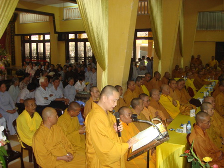 Đến tham dự có HT.Thích Đức Nghiệp – Phó Thư ký HĐCM, HT. Thích Hiển Pháp – Phó Pháp CHủ, HT. Thích Trí Quảng – Phó chủ tich Hội đồng Trị sự, HT. Thích Hiển Tu -thành viên HĐCM…chư Tôn đức HĐCM, HĐTS, Ban trị sự Thành hội TP. HCM, Ban đại diên Phật giao 24 quận, huyện, chư hành giả hạ trường và đông đảo Phật tử.
