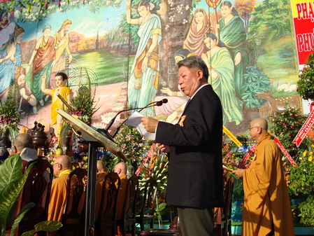 Tiến sĩ Trần Thành Long, Chủ tịch Uỷ Ban Mặt trận tổ quốc Việt nam TP.HCM, phát biểu