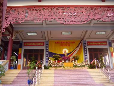 Trang trí lễ Phật đản trước cửa Thiền viện Quảng Đức, Văn phòng II Trung ương Giáo hội Phật giáo Việt Nam