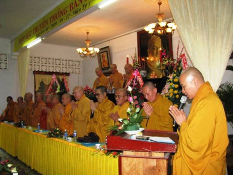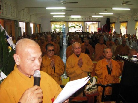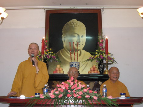 Tiếp đó, TT. Thích Phước Nghiêm – Phó ban HP , đọc báo cáo tổng kết hoạt động Phật sự năm 2008 và nêu phương hướng hoạt động trong năm 2009.
