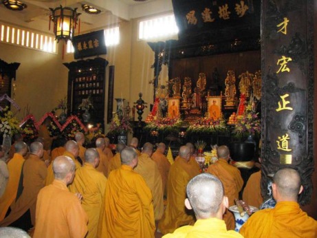Sau Lễ tưởng niệm cố HT. Thích Thiện Hoa tại Tổ đường, chư Tôn đức Tăng Ni và Phật tử đã vân tập tại hội trường để họp mặt truyền thống. Tham dự có chư Tôn đức Ban HP TW GHPGVN, Ban HP THPG TPHCM, Giảng sư Khóa Thiện Hoa – Trí Thủ, Giảng sư 2 lớp đào tạo Trung – Cao cấp Giảng sư BHPTW, Tăng ni sinh lớp Trung cấp Giảng sư Chư Tăng ni, Phật tử đạo tràng Pháp Hoa.
