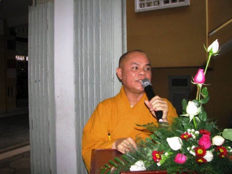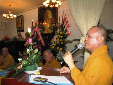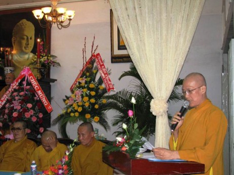 TT. Thích Tấn Đạt thay mặt BHP phát biểu cảm tạ đến chư tôn giáo phẩm lãnh đạo Giáo hội đã quang lâm chứng minh và tham dự buổi tưởng niệm và họp mặt năm nay.