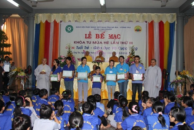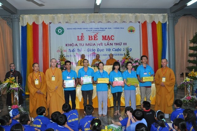 Lễ bế mạc đã diễn ra dưới sự chứng minh của chư tôn thiền đức tăng ni tp Vũng tàu, ban tổ chức đã trao thưởng cho các chúng và các khóa sinh gương mẫu. bên cạnh đó ban tổ chức cũng tuyên dương công đức của các tiểu ban bảo vệ, nhà trù cùng các nhà mạnh thường quân đã hỗ trợ cho khóa tu thành công viên mãn.