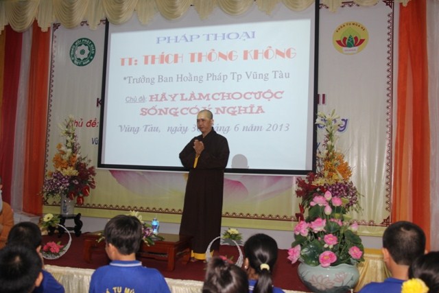 Tiếp đó là thời pháp thoại “ Con Đường Hạnh Phúc” của Thượng Tọa Thích Thông Không Trưởng Ban Hoằng Pháp TP Vũng Tàu, thời pháp thoại này đã giúp các khóa sinh phần nào tìm lại chính mình, giải đáp khắc khoải, ưu tư của các bạn trẻ “đâu mới thật là chơn hạnh” phúc.