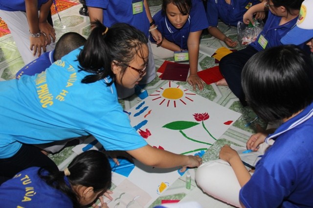 Không khí được làm nóng hơn với trò chơi “xé giấy dán tranh” được các em dưới 14 tuổi thể hiện ước mơ, trí tưởng tượng của mình được thể hiện qua những bức tranh sống động.