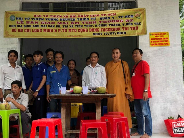 Sáng ngày 17/7/2018, ĐĐ. Thích Minh Phú – Phó Ban kiêm Chánh thư ký Ban TTXH GHPGVN TP.HCM, Chủ tịch Hội Từ Thiện Chùa Tường Nguyên Quận 4, về lại xã Tiên Thuỷ và xã Tiên Long huyện Châu Thành tỉnh Bến Tre, bàn giao 02 Mái Ấm Tình Thương cho gia đình anh Mai Văn Vũ và bà Phạm Thị Liếu.