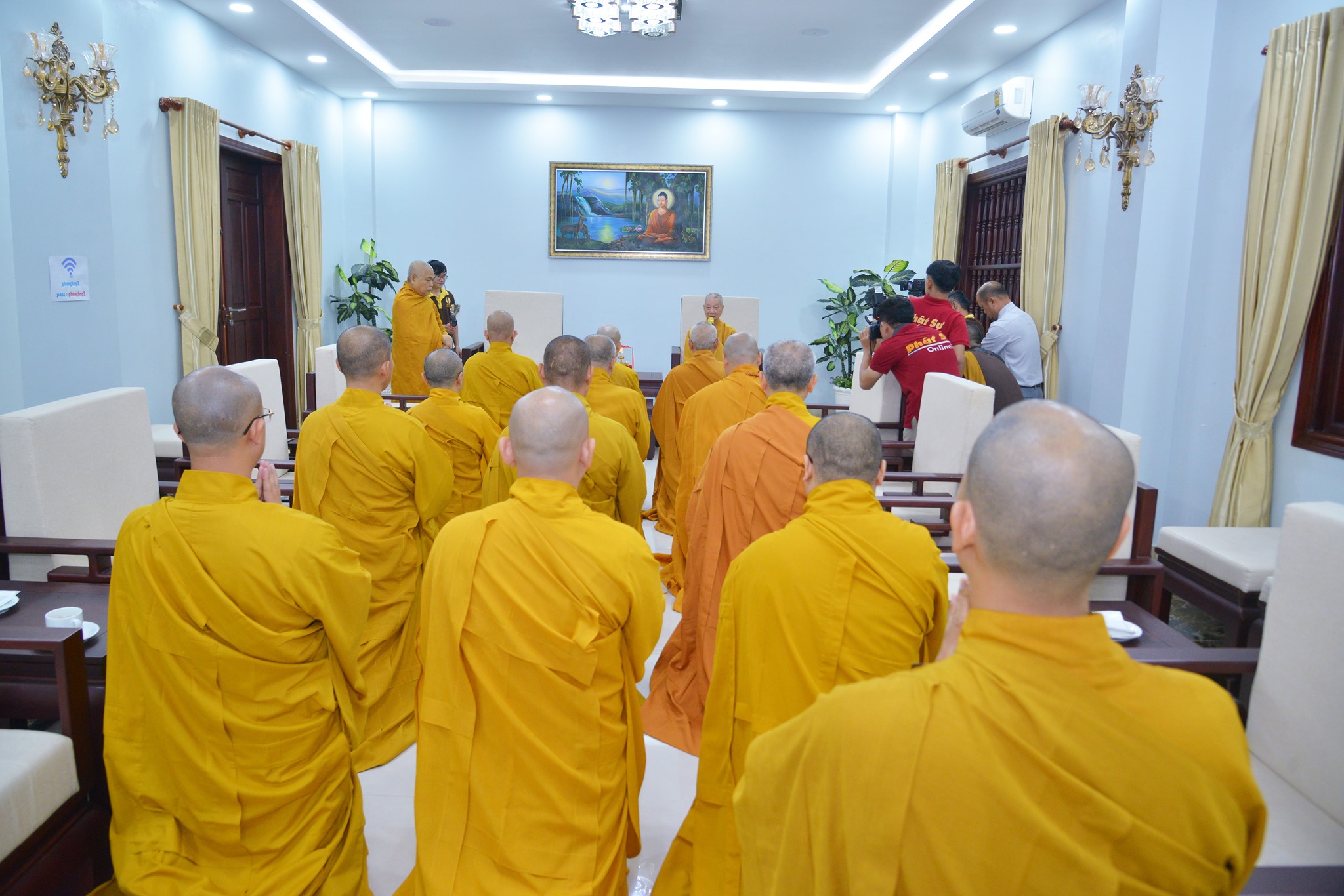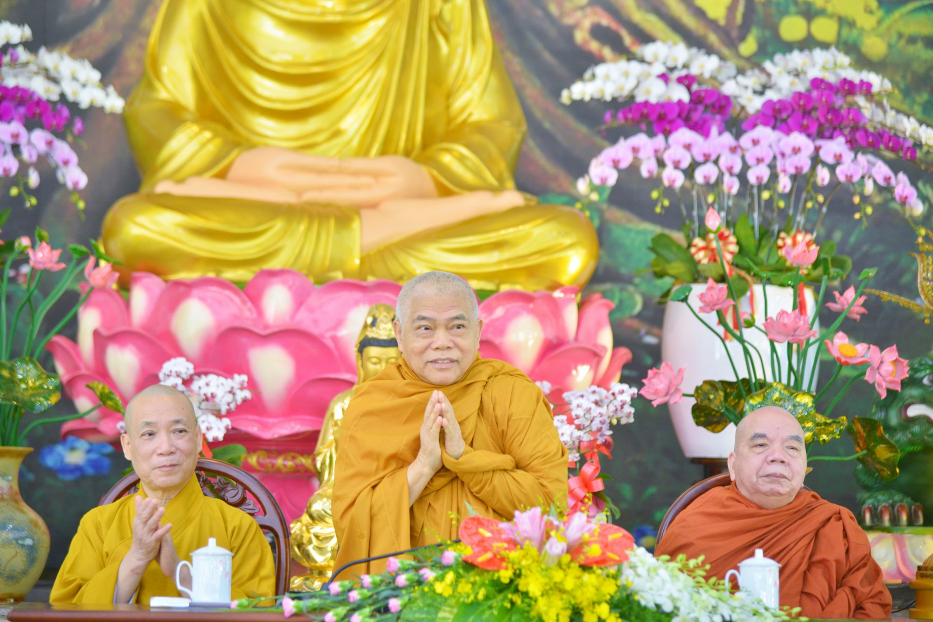 Tiếp đoàn có sự hiện diện của HT. Thích Thiện Tâm- Phó Chủ tịch HĐTS, Phó trưởng ban Trị sự GHPGVN TP.HCM; HT. Thích Thiện Đức- UVTT HĐTS, Phó Trưởng Ban Trị sự GHPGVN TP.HCM; HT. Thích Nhật Ấn- UV HĐTS, Phó ban trị sự GHPGVN TP.HCM; TT.Thích Thiện Quý – UV HĐTS, Phó Trưởng Ban kiêm Chánh Thư Ký BTS GHPGVN TP.HCM; TT.Thích Quang Thạnh – UV HĐTS, Phó Thư ký kiêm Chánh VP BTS GHPGVN TP.HCM; TT. Thích Nhật Từ – UVHĐTS, UVTT BTS GHPGVN TP.HCM, Phó Viện Trưởng Thường trực HVPGVN tại TP.HCM, cùng Chư Hoà thượng, Thượng toạ, Ni sư thuộc Ban trị sự GHPGVN TP.HCM và Hội Đồng Điều hành Học viện.