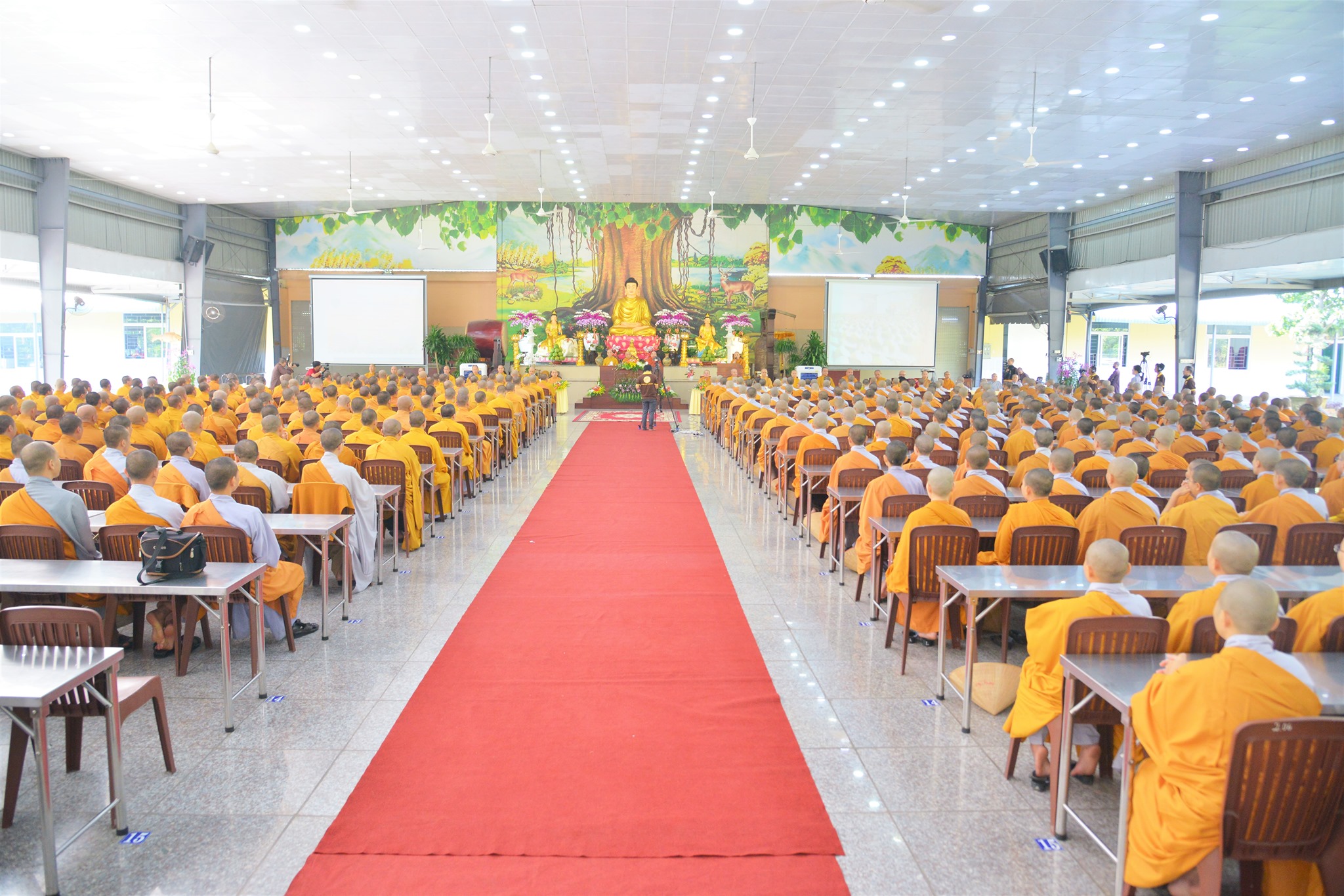 Tiếp đó quý phái đoàn đã quang lâm Chánh điện Học Viện Phật Giáo thăm viếng, sách tấn 800 hành giả Tăng ni sinh an cư tại đây.