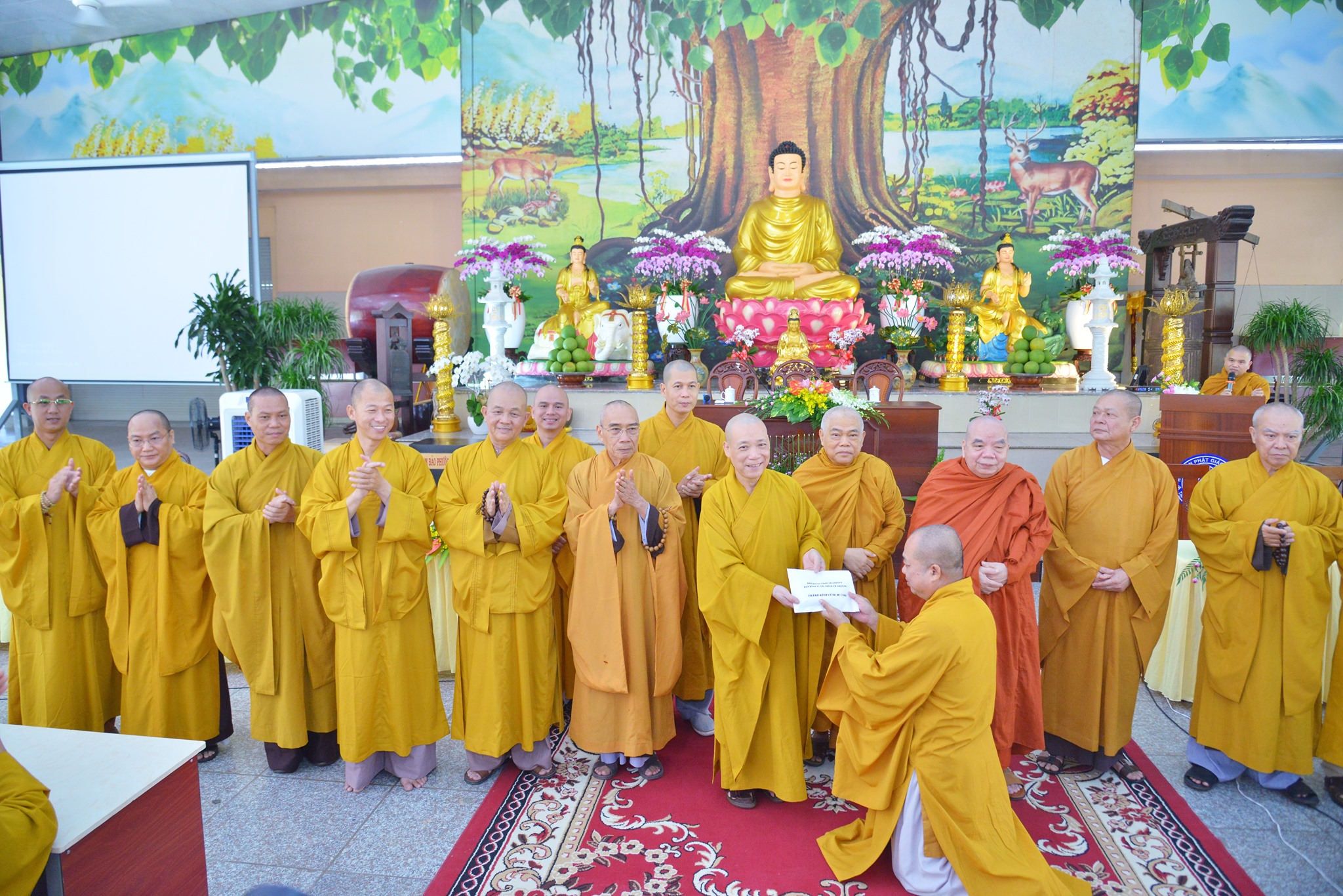 HT.Thích Giác Toàn- Phó chủ tịch HĐTS, Viện trưởng Viện nghiên cứu Phật Học Việt Nam, Chứng minh Ban Hoằng Pháp TƯ GHPGVN; HT. Thích Bảo Nghiêm- Phó Chủ tịch HĐTS, Trưởng Ban Hoằng Pháp TƯ GHPGVN; HT.Thích Quang Nhuận – Phó trưởng ban thường trực Ban Hoằng Pháp TƯ GHPGVN; cùng chư tôn Hoà Thượng, chư Thượng Toạ, Đại đức thành viên Ban Hoằng Pháp TƯ GHPGVN.