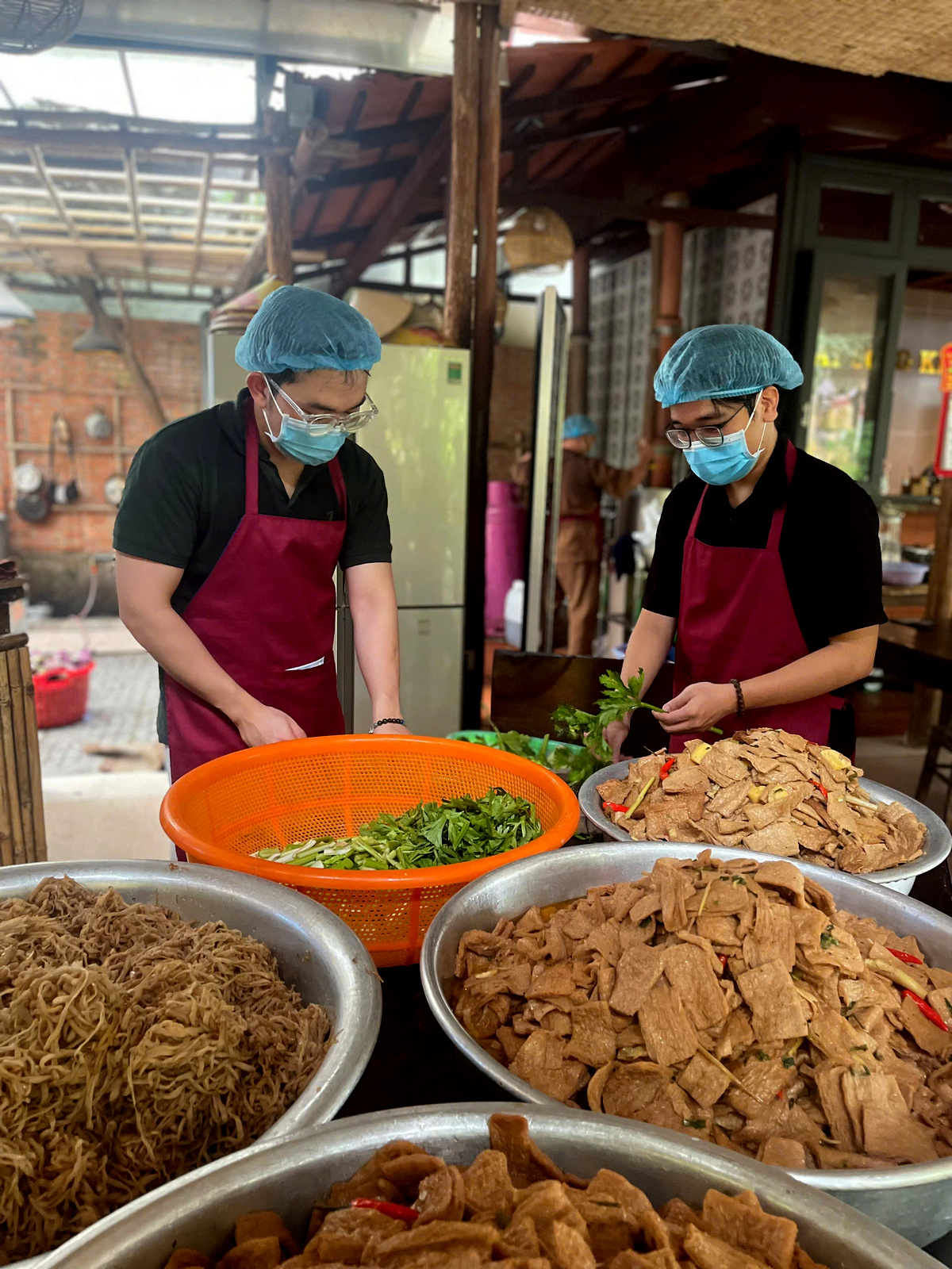 Thực đơn được thay đổi liên tục, gồm những món ăn truyền thống được làm từ rau củ quả xanh và đậu phụ.