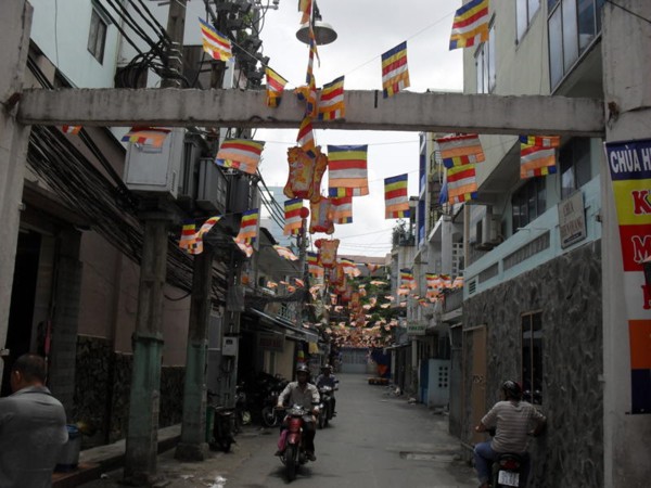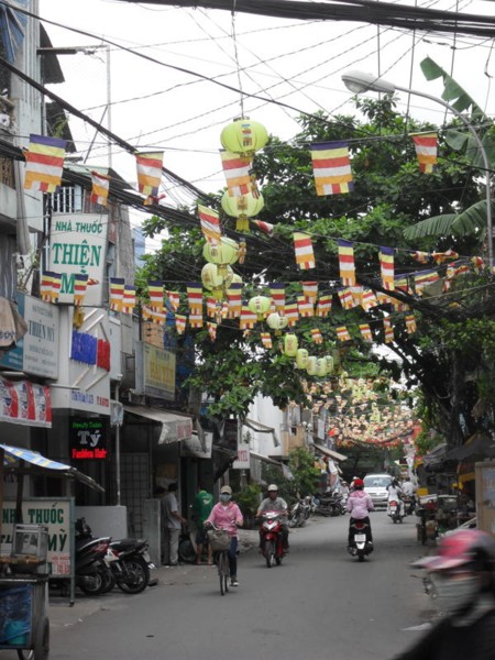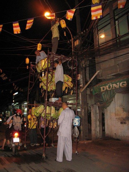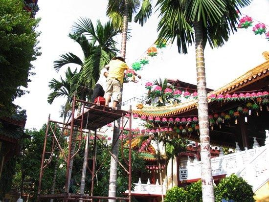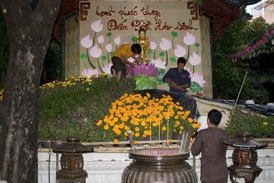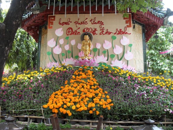 Hòa trong không khí vui mừng và hân hoan ấy, chùa Viên Giác (TPHCM) đã trang hoàng lồng đèn, cờ hoa, thiết lập vườn Lâm Tỳ Ni đón mừng ngày đản sinh của Đức Từ Phụ.