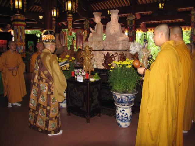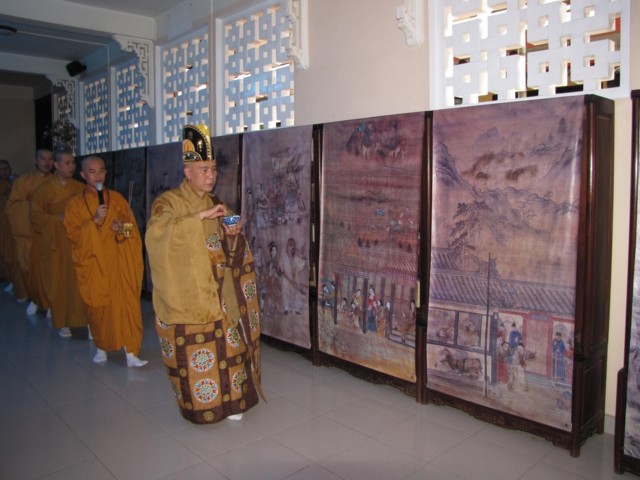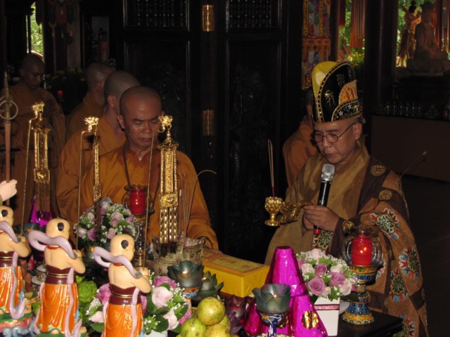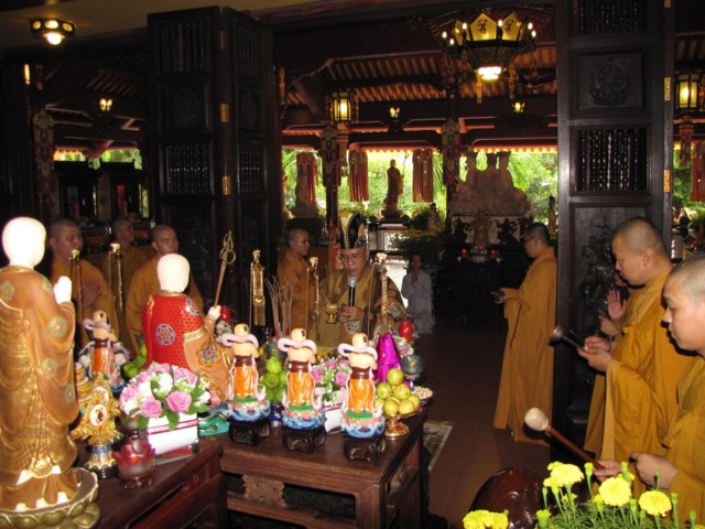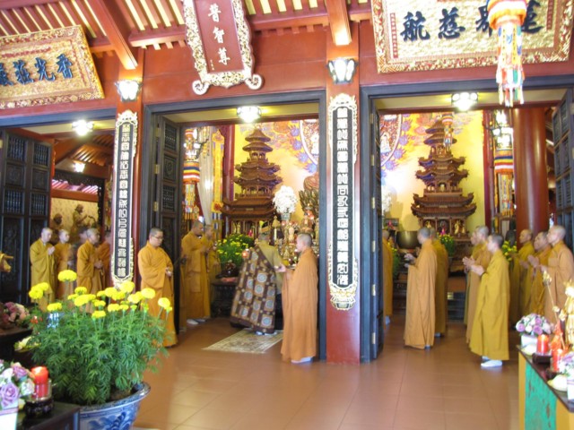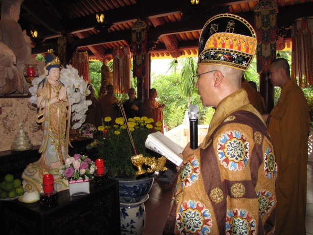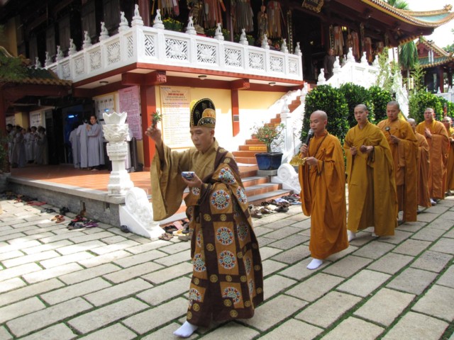 Buổi lễ bắt đầu diễn ra lúc 14h trong không khí trang nghiêm và thành kính với khóa lễ niêm đàn sái tịnh đàn tràng cung thỉnh mười phương chư Phật quang giáng đạo tràng chứng minh pháp hội.
