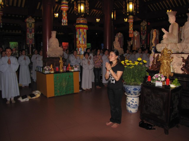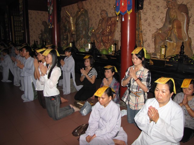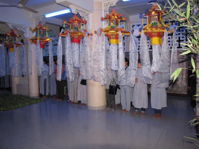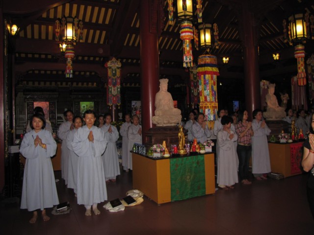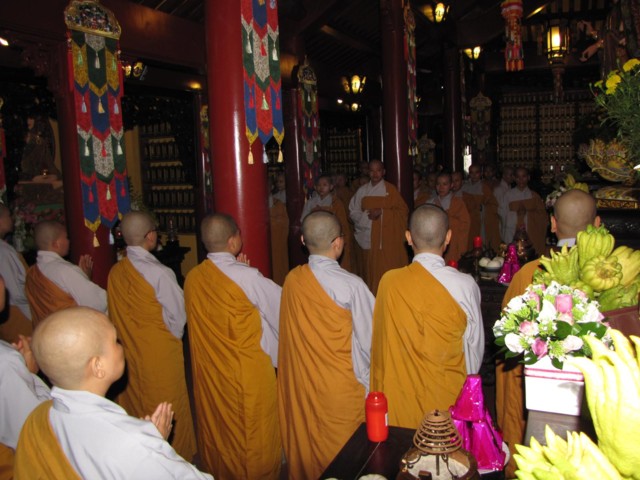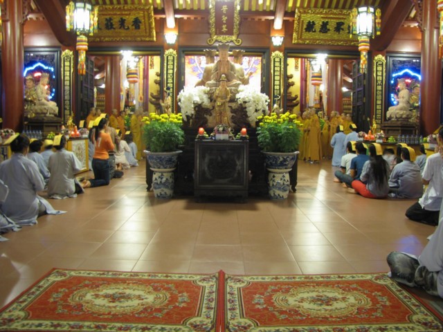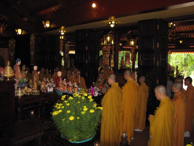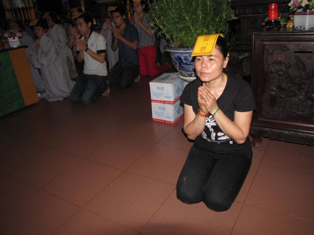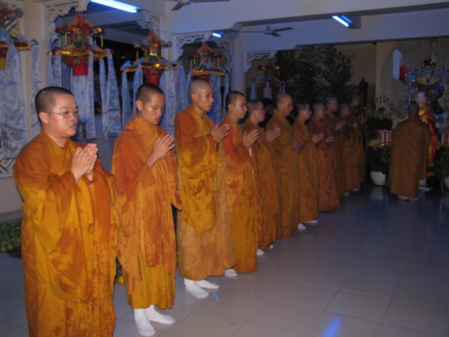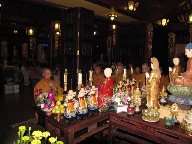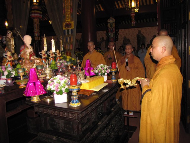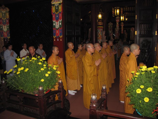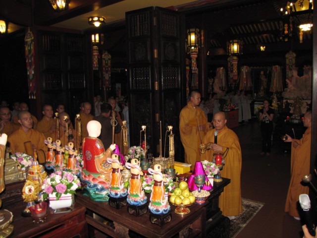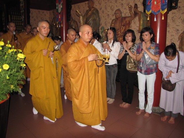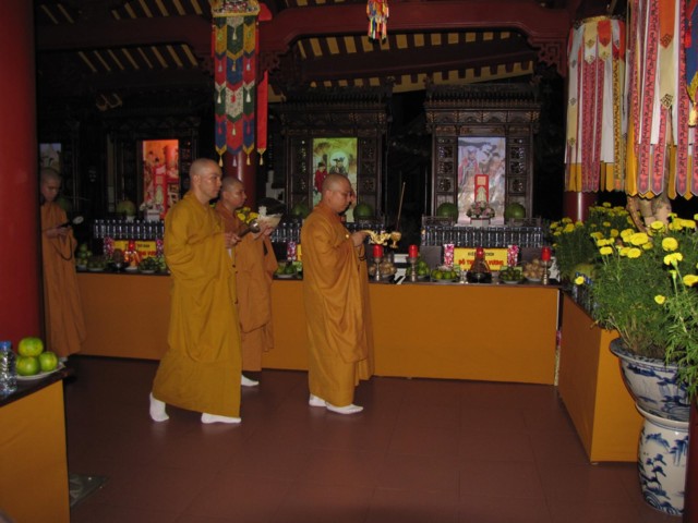 Vào lúc 19h là khóa lễ trì niệm danh hiệu Bồ Tát Địa Tạng, nhiễu Phật kinh hành trên đại điện và hồ giải oan để chiêu u với sự tham gia đông đảo của chư Tăng và Phật tử.