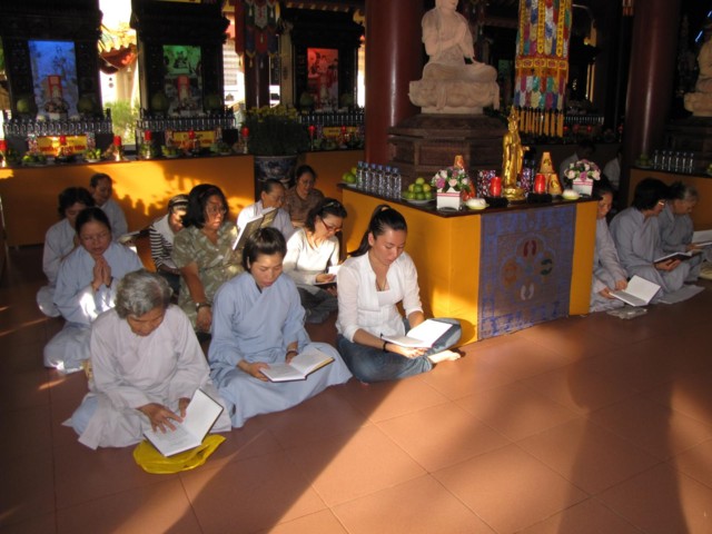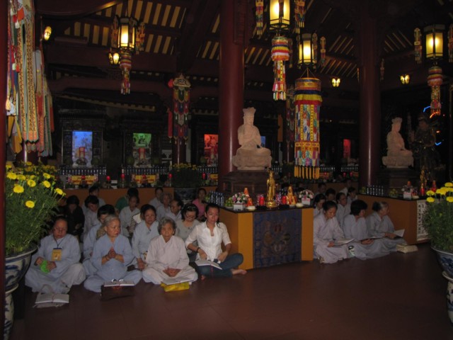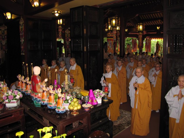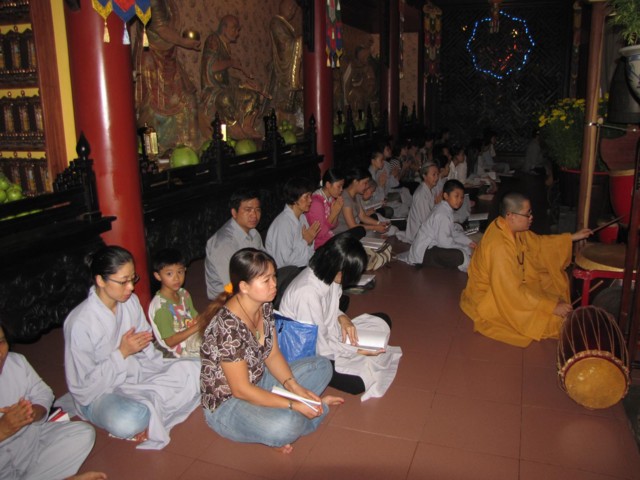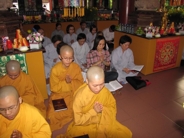 Sau đó, là khóa lễ trì tụng Kinh Địa Tạng do chư Ni và Phật tử đồng tham gia hộ niệm nguyện cầu quốc thái dân an, nhân dân an lạc, kẻ còn người mất, hàm triêm lợi lạc, lục đạo cô hồn, siêu sanh thoát hóa.