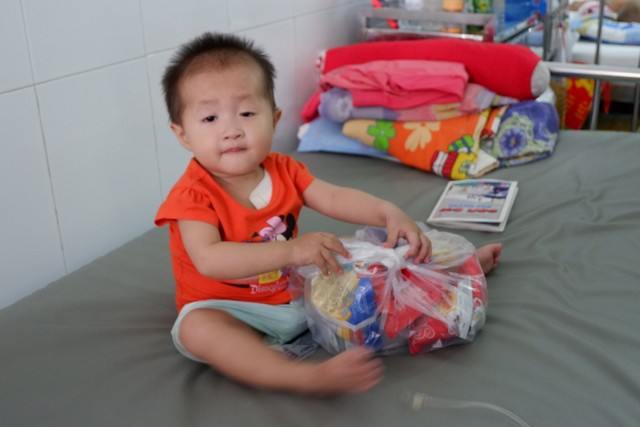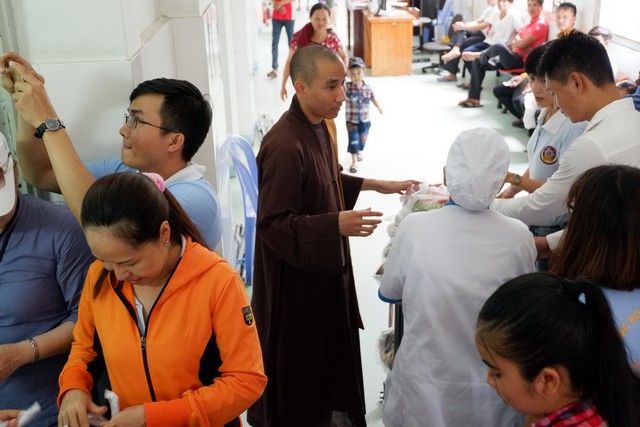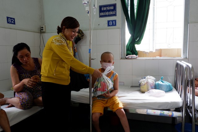 Tại đây, các thành viên đã được Thầy Chủ nhiệm CLB hướng dẫn thăm hỏi và trao tặng 220 suất quà đến với các em đang điều trị tại bệnh viện. Mỗi phần quà gồm có: sữa, dầu gió, bánh và cháo gói; tất cả đều được sự chung tay góp sức từ quý mạnh thường quân và thành viên trong CLB.
