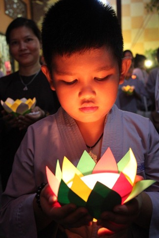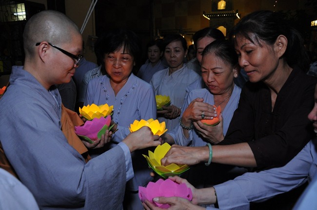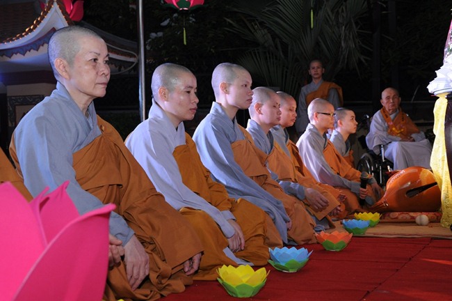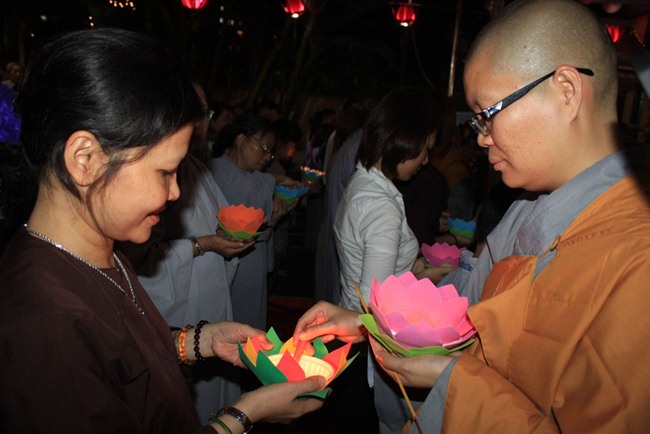 Chiều tối ngày 16/7/GiápNgọ, Quan Âm Tu Viện đã tổ chức lễ hoa đăng và hội diễn văn nghệ kỷ niệm 09 năm thành lập Đạo tràng Đại bi, đón mừng Đại lễ Vu Lan Báo Hiếu. Những ngọn hoa đăng chiếu sáng lung linh trong đêm hòa với những lời kinh tiếng kệ của chư Ni và Phật tử đã tạo nên một không gian tâm linh vô cùng thiêng liêng và mầu nhiệm, làm tăng thêm tín tâm cho mọi người. Đặc biệt, Sư bà viện chủ, dù sức khỏe đã yếu đi nhiều nhưng cũng đã chứng minh, tham dự lễ hoa đăng và truyền đăng cho chư Ni cùng Phật tử.