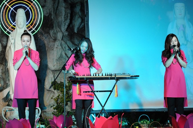 Chương trình văn nghệ tại Quan Âm Tu Viện có chủ đề “Quan Âm & Mẹ”, với sự tham gia biểu diễn của nhiều ca sĩ, nghệ sĩ nổi danh như Phương Thanh, Vân Khánh, Sỹ Luân, Lam Trường, Quang Hà, Minh Thuận, Tiến Đạt, Quách Beem,… đã hiến tặng cho khán giả những lời ca tiếng hát ngọt ngào, những giai điệu mượt mà, đầm ấm và đầy sức truyền cảm về tình mẹ, tình cha, về công đức sinh thành, về Mẹ hiền Quán Thế Âm…