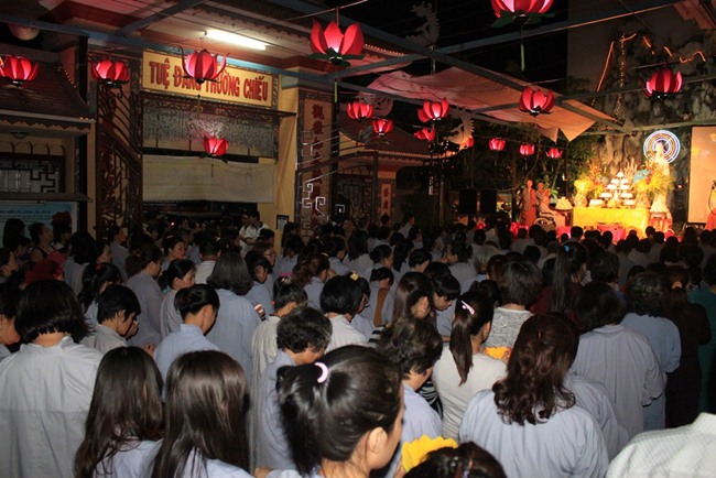 Mỗi tối, rất đông Phật tử quy tụ về chùa cùng tụng kinh Vu Lan Báo Hiếu dưới sự dẫn dắt của chư Ni trong bổn tự. Lời kinh tụng ngân vang, với lòng chí thành chí kính, mọi người đều thành tâm trì tụng và hồi hướng công đức ấy cho cửu huyền thất tổ, cha mẹ bảy đời đã quá vãng thì được siêu sanh về miền tịnh cảnh, và cha mẹ hiện tại thì được phước thọ thêm lớn, an lành, hạnh phúc trong ánh đạo vàng.