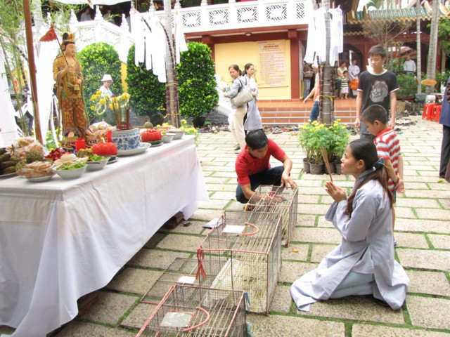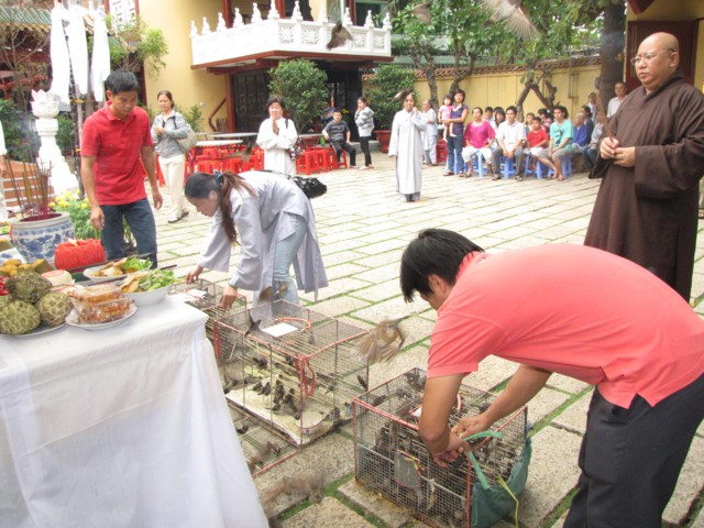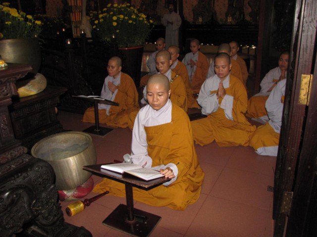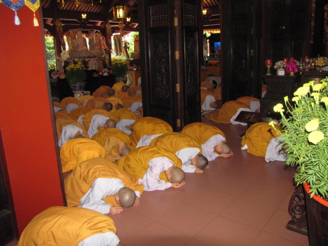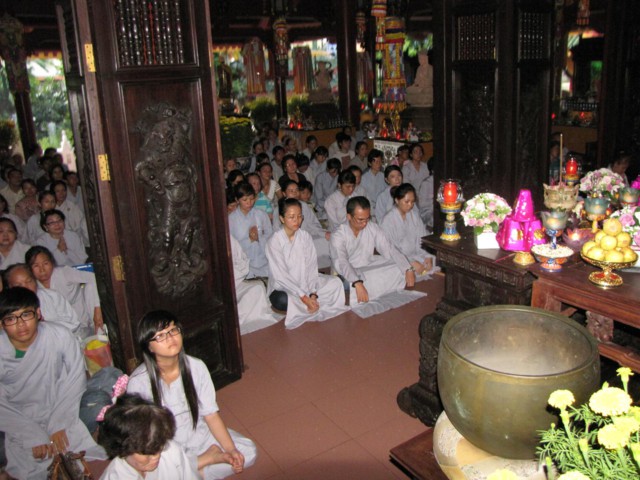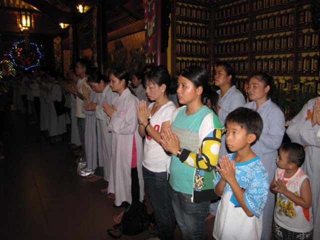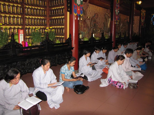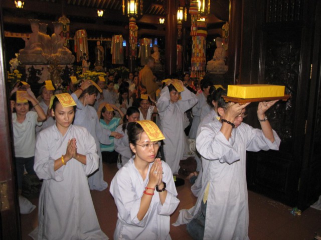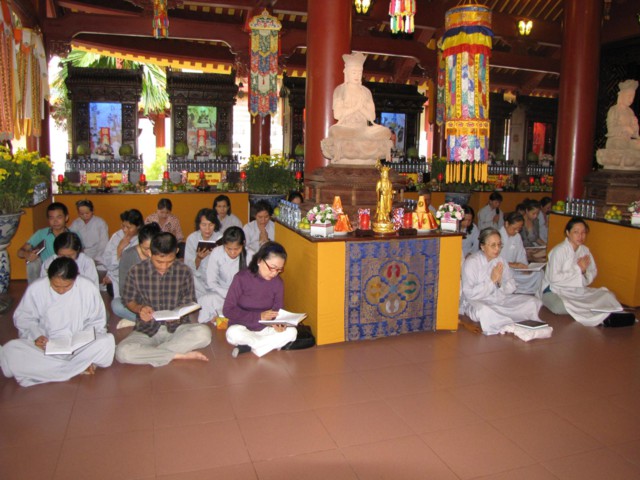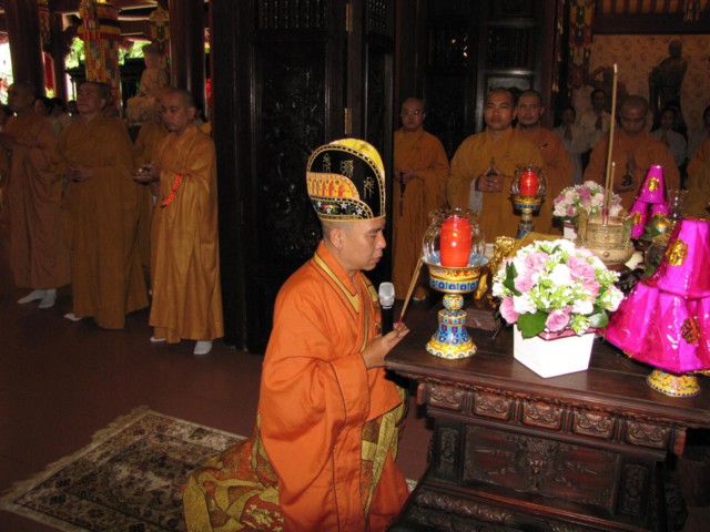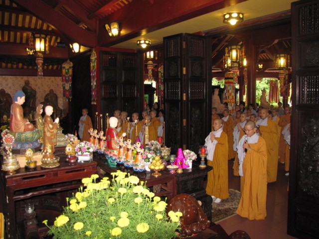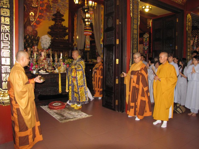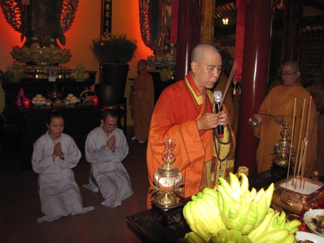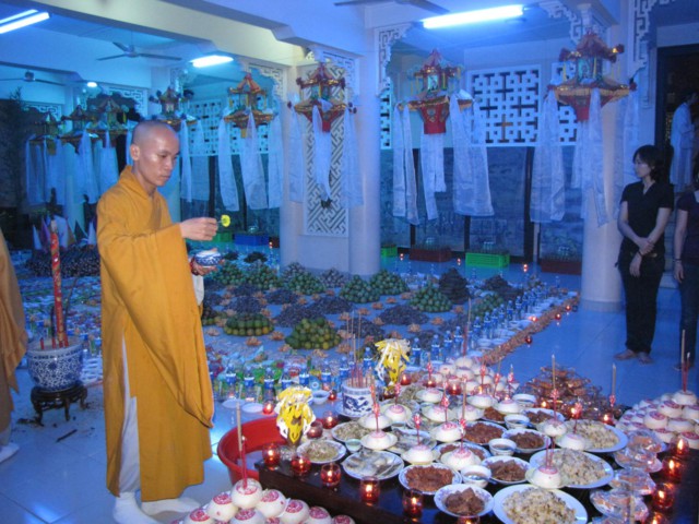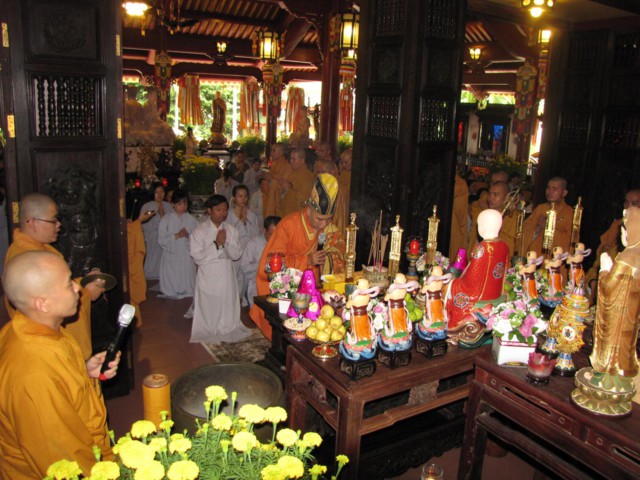 Vào lúc 9h00 sáng là bắt đầu khóa lễ tụng kinh Địa Tạng cầu nguyện cho pháp giới chúng sanh thảy đều an lạc. Sau đó là khóa lễ cúng Phật, cúng chư hương linh diễn ra với sự chủ sám của TT. Thích Quảng Chơn.