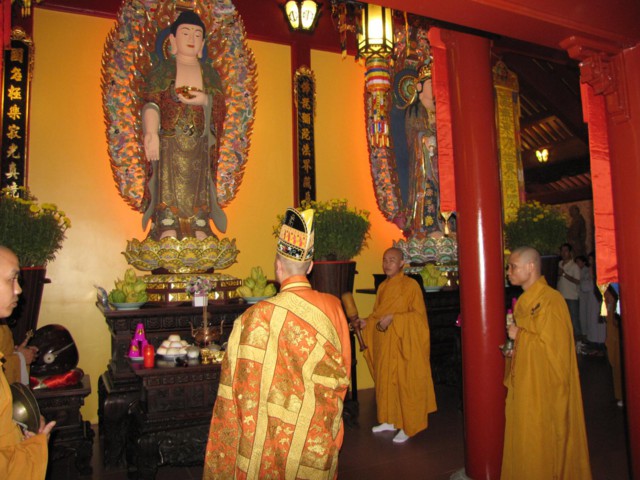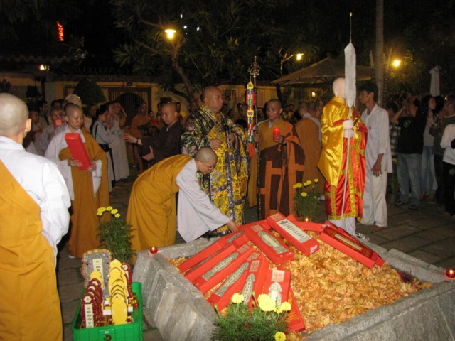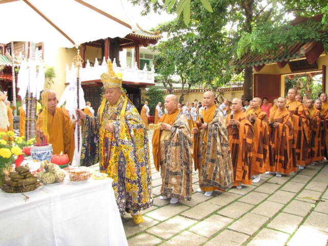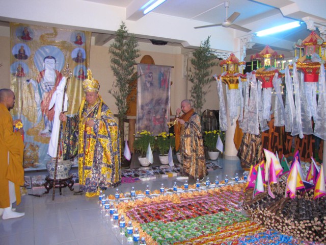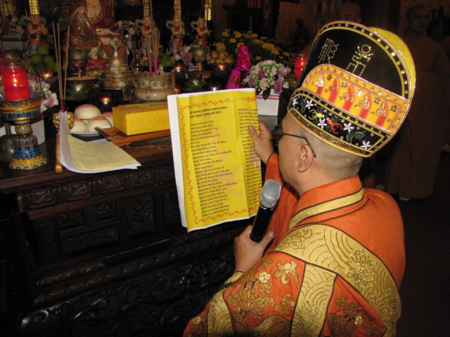 Lúc 14h00, khóa lễ đăng đàn Cam Lộ Mông Sơn chẩn tế âm linh, phổ thí pháp giới cô hồn, bạt độ cửu huyền thất tổ cùng hương linh ký tự siêu sanh Tịnh độ.