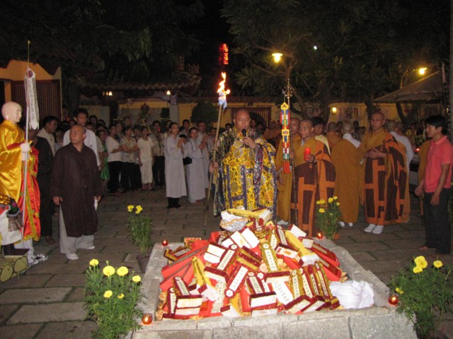 Vào lúc 20h30, lễ tống thánh và hóa sớ phụng tống chư Phật, Bồ Tát, Thánh hiền hồi quy Cực lạc diễn ra và lễ tạ đàn pháp hội đã thành tựu viên mãn.