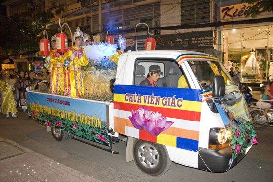 Đây có thể nói là một trong những buổi lễ rước Phật quy mô nhất tại TPHCM với sự tham gia nhiệt tình của quần chúng Phật tử.