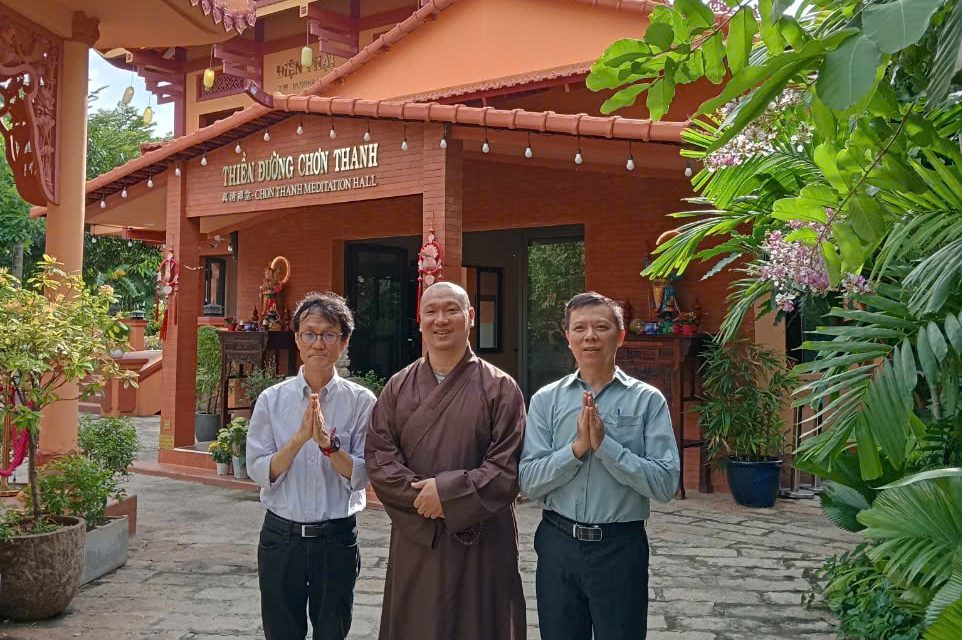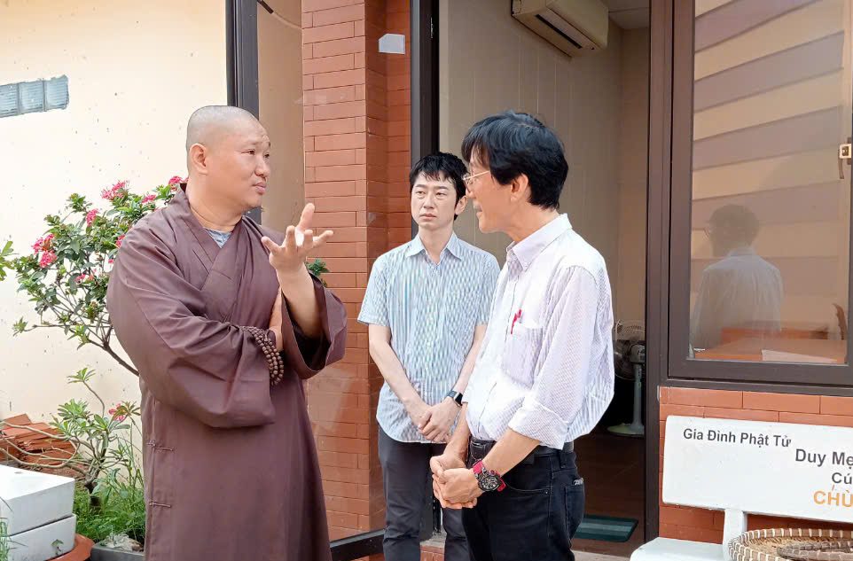 Thượng tọa Thích Minh Thuận – Trụ trì Chùa An Hòa thân mật tiếp Giáo sư Shimizu Masaaki, thầy Phạm Văn Luân – Giảng viên trường Đại Học Văn Hóa TP.Hồ Chí Minh.