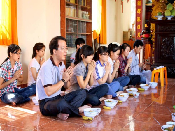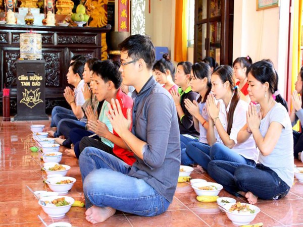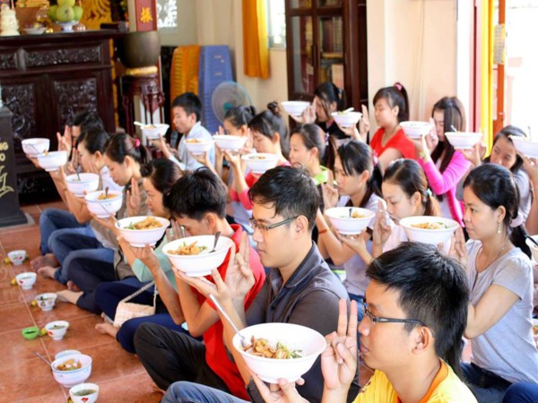 Sau đó đại chúng đã thực tập thọ thực trong chánh niệm tại chánh điện bản tự.