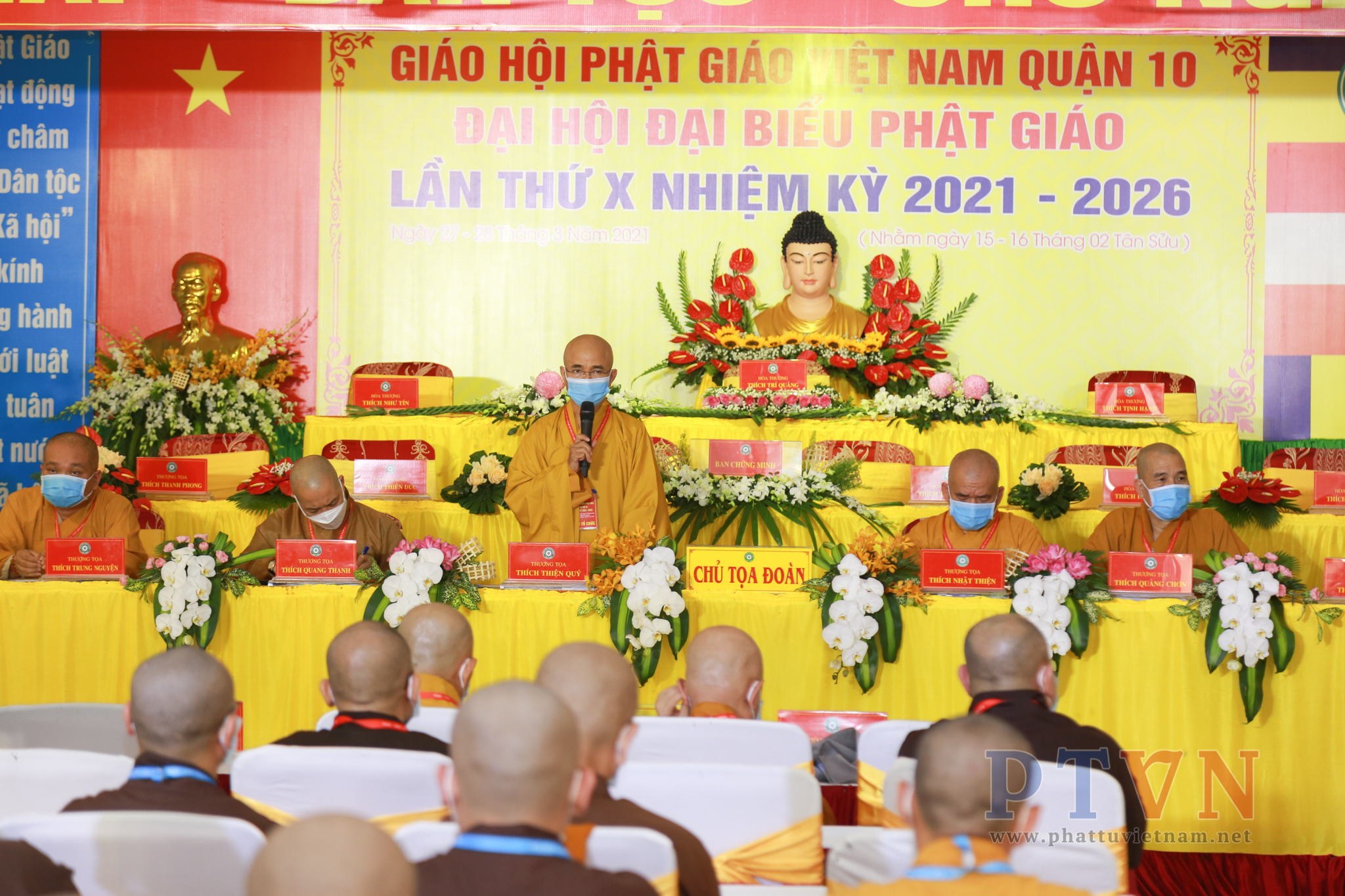 Thượng tọa Thích Thiện Quý, Phó ban kiêm Chánh Thư ký Ban Trị sự GHPGVN TP.HCM thay mặt Ban chỉ đạo Đại hội Phật giáo quận huyện đánh giá cao tinh thần trách nhiệm của chư tôn đức thành viên BTS GHGPVN Q.10 trong việc chuẩn bị chu đáo các khâu cho chương trình Đại hội Đại biểu chính thức diễn ra vào sáng ngày mai 28/3.
