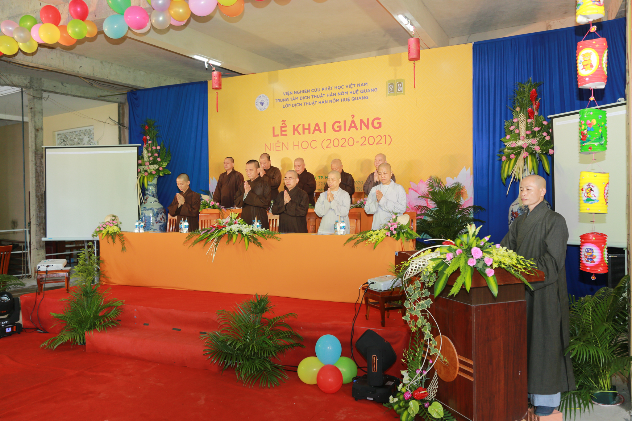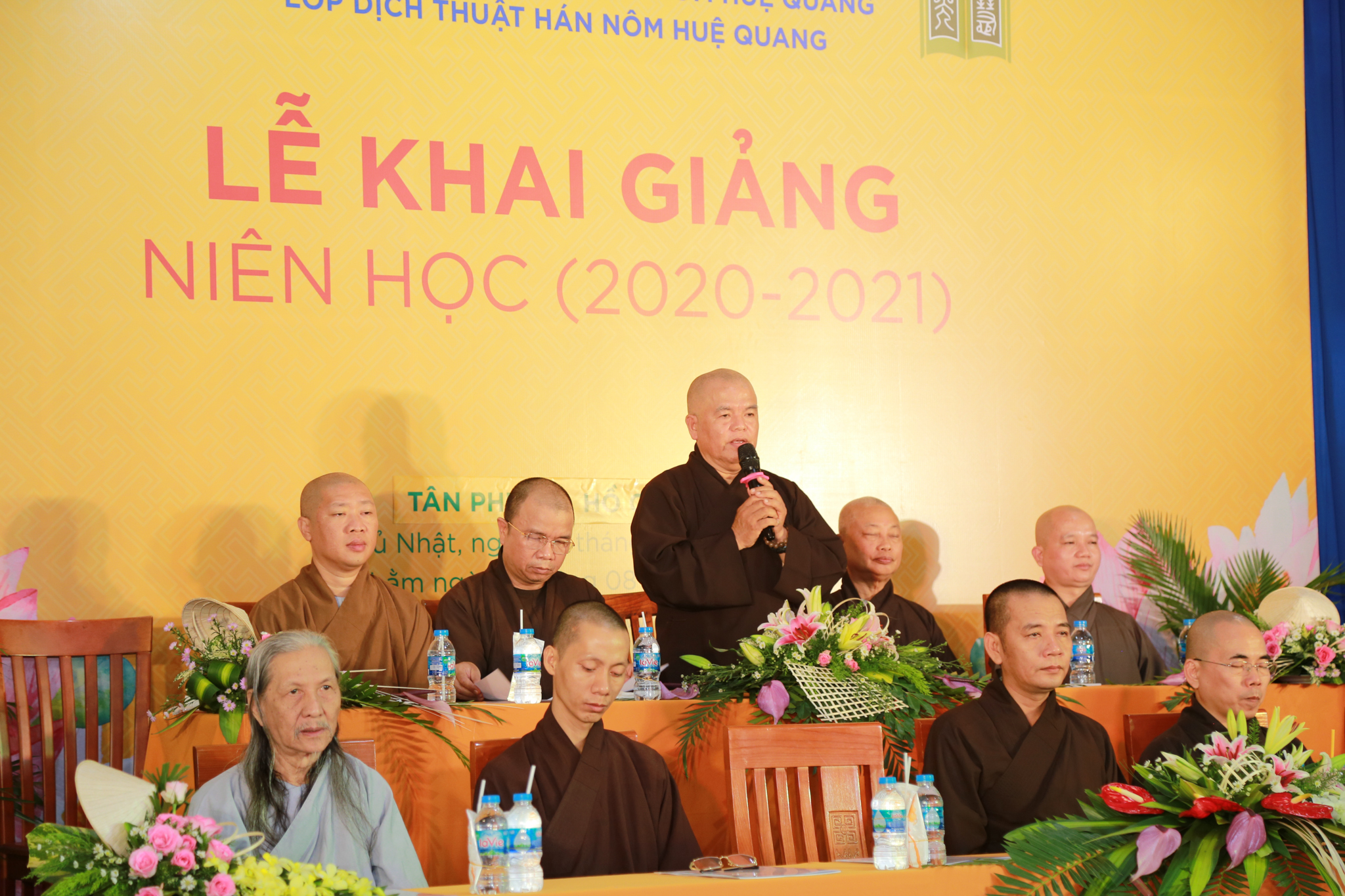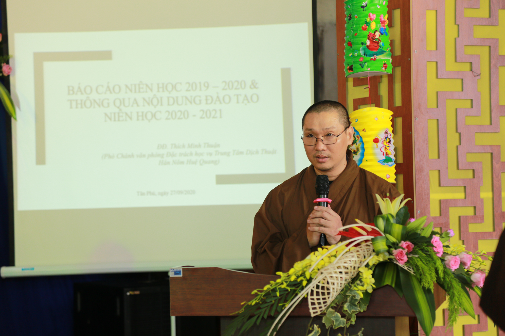 Theo đó, Phụ Trách Văn phòng Học Vụ Lớp Dịch Thuật Hán Nôm Huệ Quang, Đại Đức Thích Minh Thuận đã báo cáo tổng kết về các hoạt động đào tạo niên học 2019 – 2020, đồng thời cho biết về quả Tuyển sinh và kế hoạch đào tạo năm học 2020 – 2021.