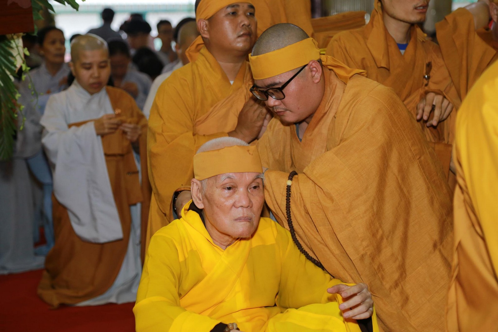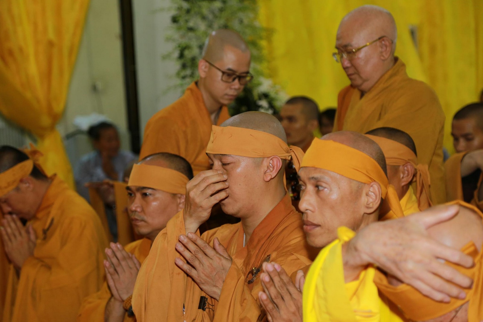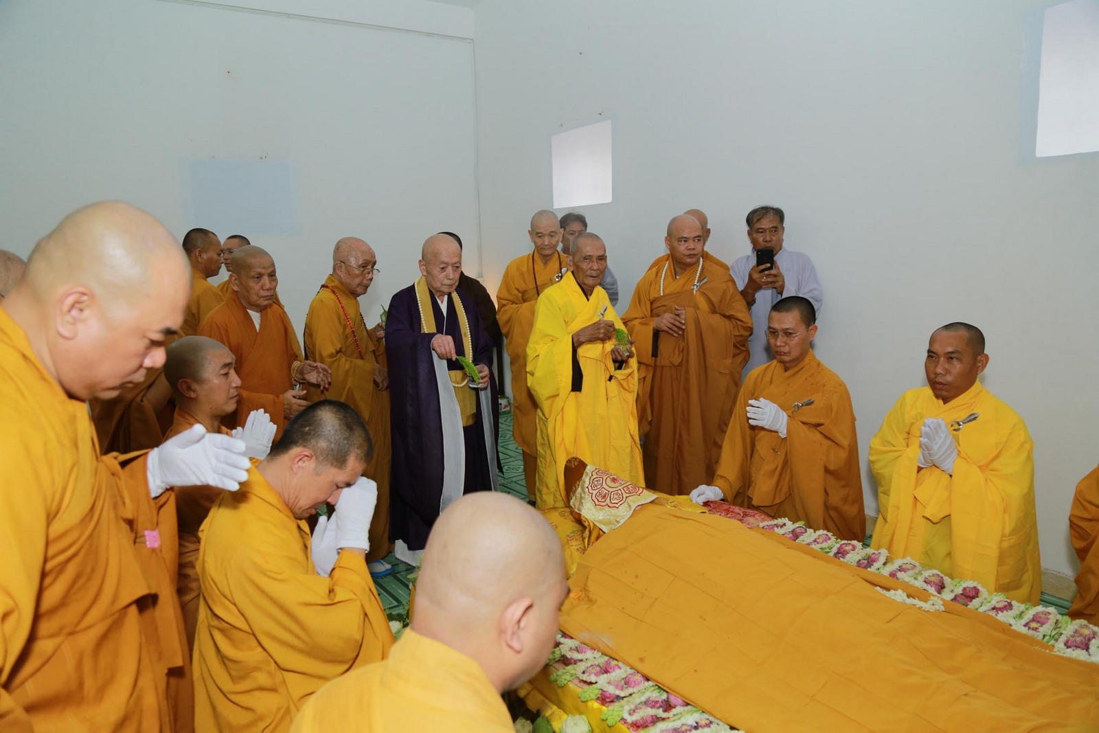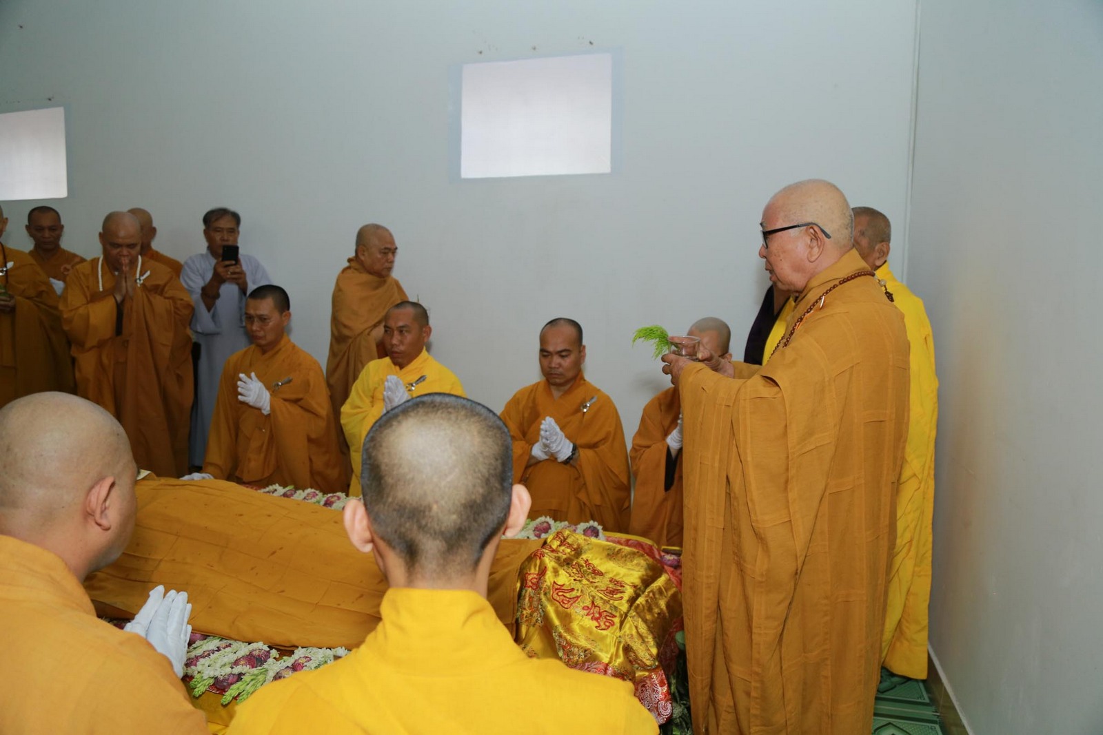 Sau khi nhập quan, chư tôn đức tiến hành lễ thọ pháp tang cố Đại lão hòa thượng Thích Viên Giác.