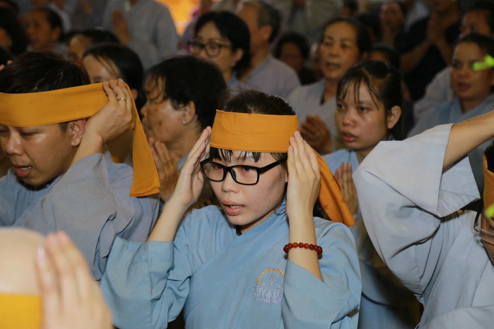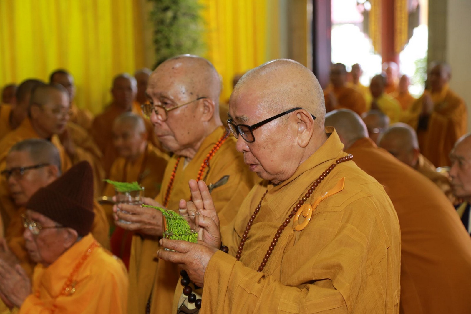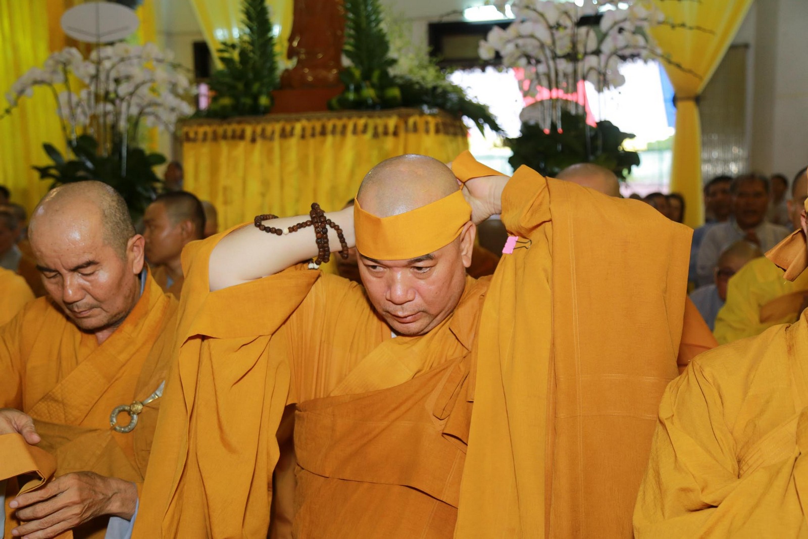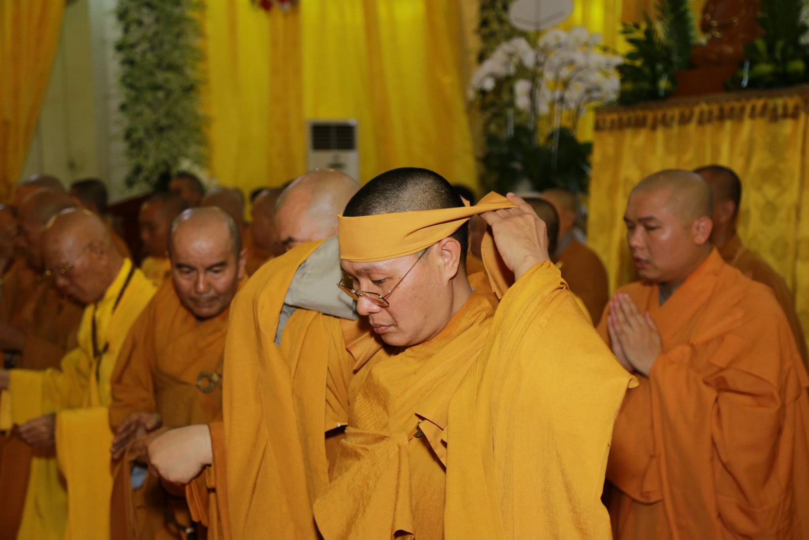 Sau khi nhập quan, chư tôn đức tiến hành lễ thọ pháp tang cố Đại lão hòa thượng Thích Viên Giác.