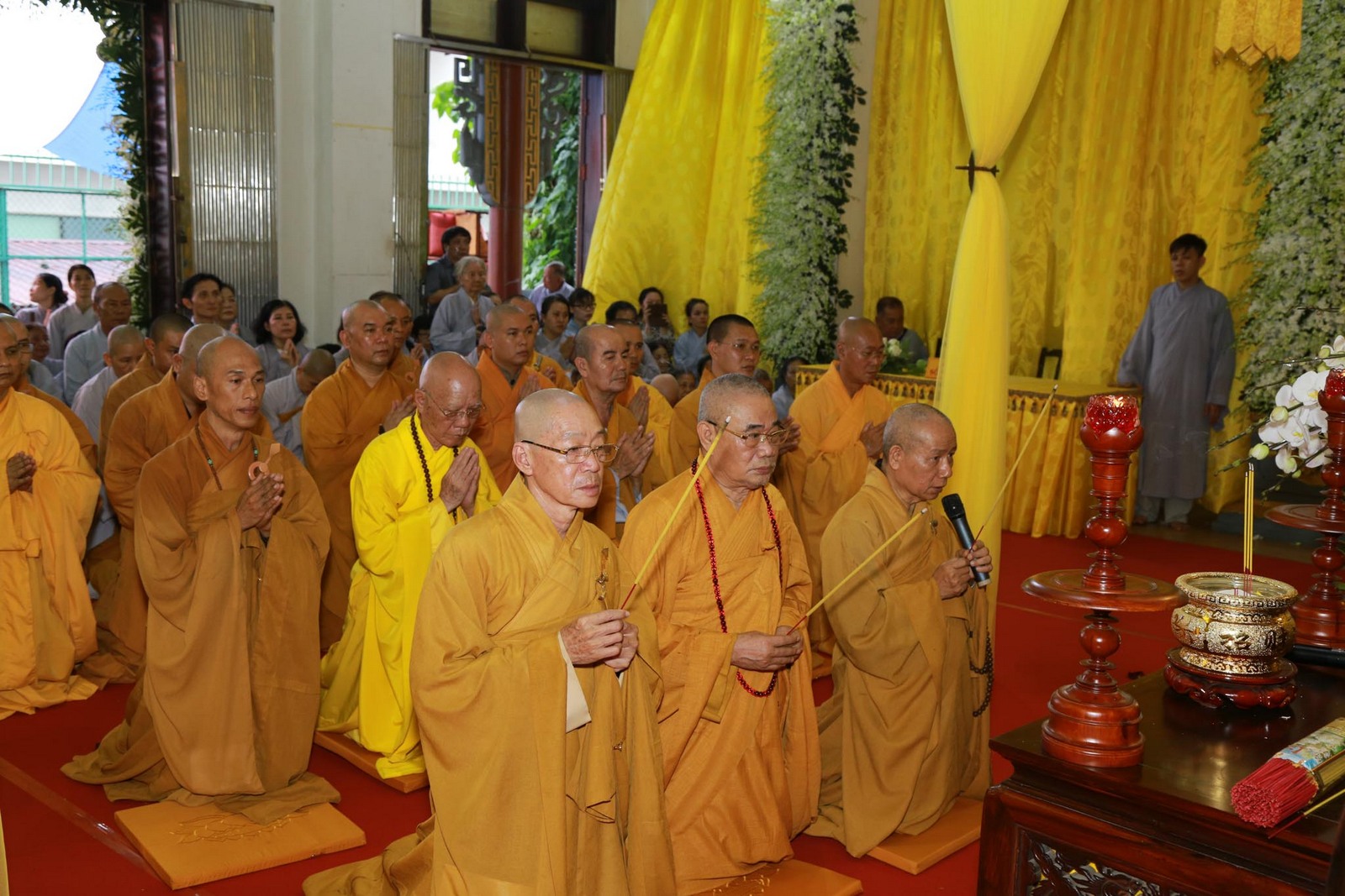Buổi lễ có sự chứng minh của Trưởng lão HT.Thích Đức Nghiệp – Phó Pháp chủ Hội đồng Chứng minh; HT.Thích Như Tín, HT.Thích Tịnh Hạnh, HT.Thích Giác Hà, HT.Thích Minh Chơn – đồng Thành viên Hội đồng Chứng minh; HT.Thích Thiện Nhơn – Chủ tịch Hội đồng Trị sự; HT.Thích Thiện Pháp – Phó Chủ tịch Thường trực Hội đồng Trị sự, Trưởng ban Tăng sự Trung ương GHPGVN; HT.Thích Thiện Tánh – Phó Chủ tịch Hội đồng Trị sự, Trưởng ban Kiểm soát TƯ; HT.Thích Giác Toàn – Phó Chủ tịch Hội đồng Trị sự, Viện trưởng Viện nghiên cứu Phật học, HT.Thích Huệ Minh – Ủy viên Thường trực Hội đồng Trị sự, Trưởng ban Nghi lễ Trung ương, đương vi sám chủ; cùng chư Tôn đức Giáo phẩm Hội đồng Trị sự, Ban Trị sự Phật giáo TP.HCM, Ban Trị sự Phật giáo quận 7 và huyện Nhà Bè, Tăng Ni trụ trì các tự viện và môn đồ pháp quyến đồng tham dự.