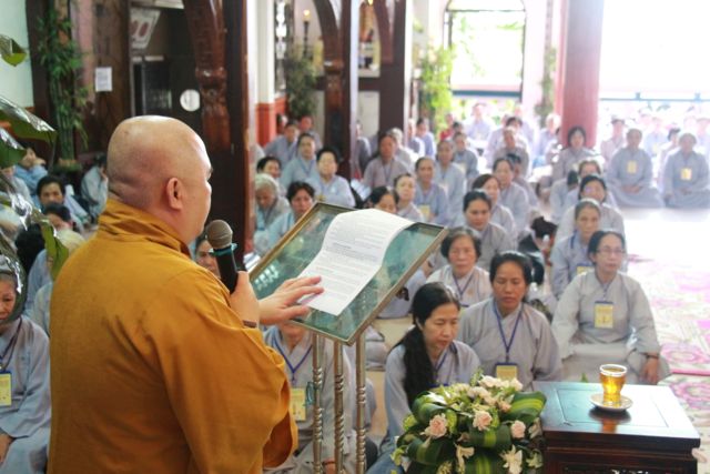 Tiếp theo, ĐĐ. Thích Thiện Thuận – Tri Sự tại Tổ Đình Phổ Quang báo cáo tổng kết thành quả tu học của 257 Phật tử. Trong suốt 9 ngày qua, dưới sự hướng dẫn của Chư Tôn Đức Ban Giảng Huấn, đã có 9 thời thuyết giảng. Song song đó, mỗi ngày đạo tràng đều trì tụng Kinh Vô Lượng Thọ, Kinh Diệu Pháp Liên Hoa, thực tập tọa thiền, niệm Phật,… Mỗi hành giả đã cảm nhận được sự an lạc trong khóa tu này.