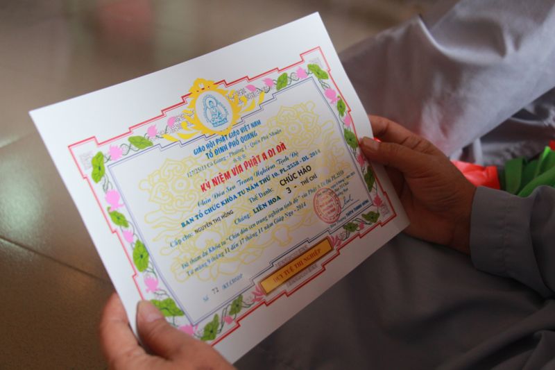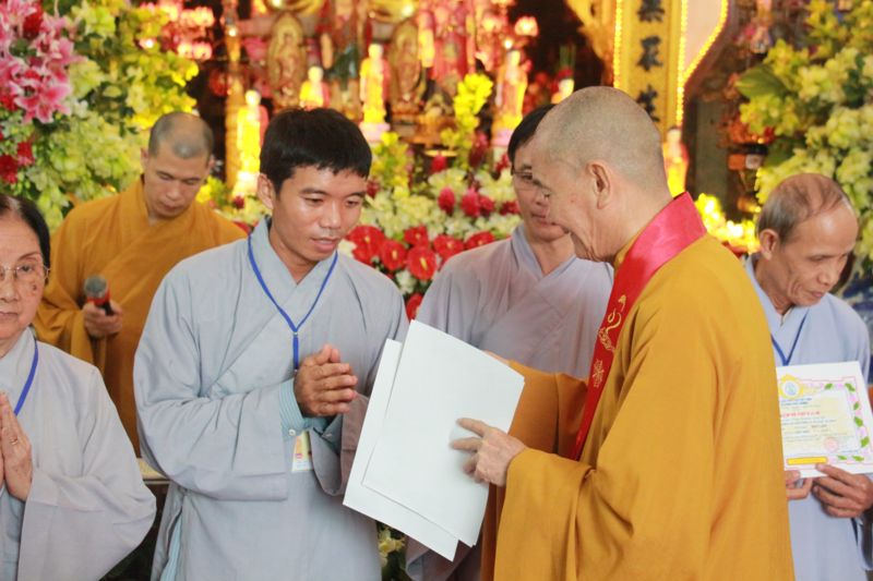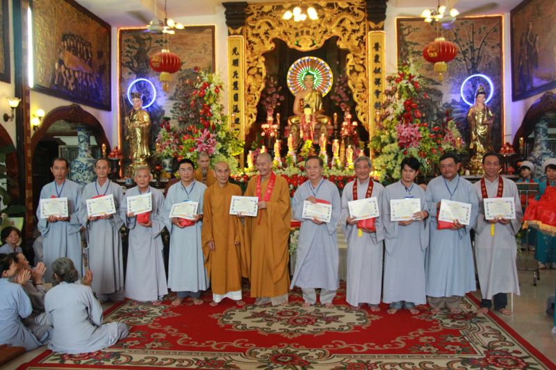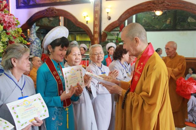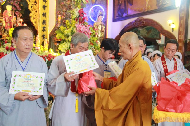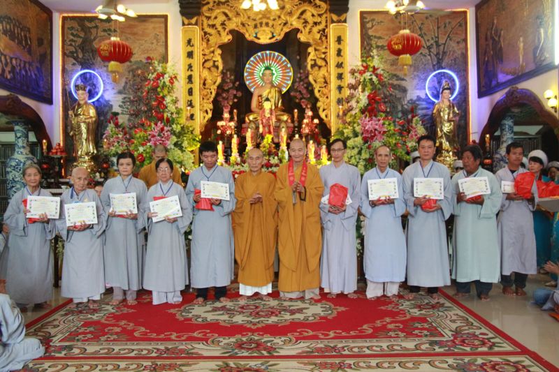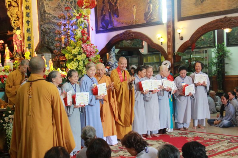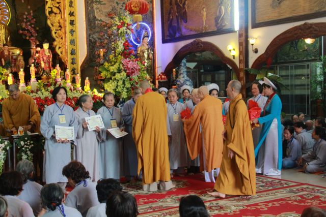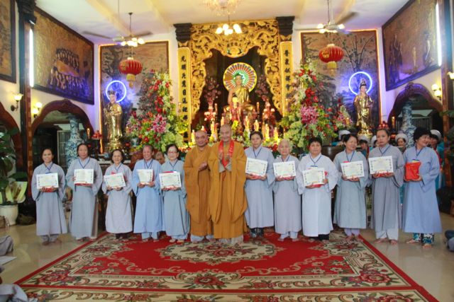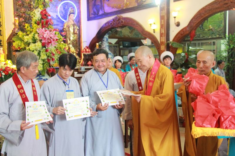 Để khích lệ tinh thần tu học cho quý Phật tử, Ban Tổ Chức đã trao Giấy Chứng Nhận và các tặng phẩm văn hóa Phật giáo trong niềm hoan hỷ của ngày lễ tổng kết.