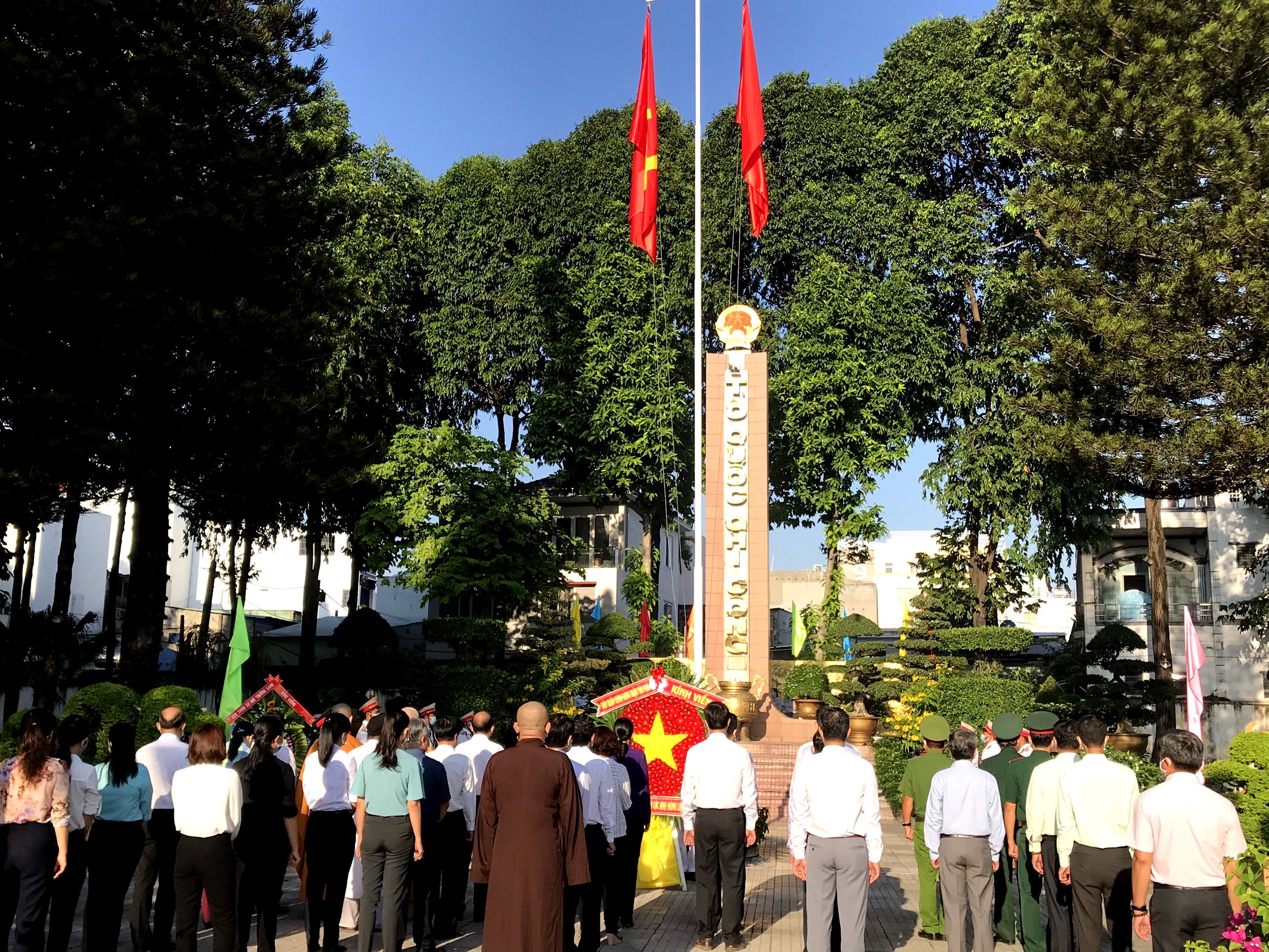 Sáng nay 31/8, Thường trực Quận ủy – Hội đồng nhân dân – Ủy ban nhân dân – Ủy ban Mặt trận Tổ quốc Việt Nam quận Tân Phú cùng lãnh đạo các ban ngành, đoàn thể quận, các chức sắc tôn giáo đến dâng hương tưởng niệm tại Đài liệt sĩ quận Tân Phú (Đường Trường Chinh).