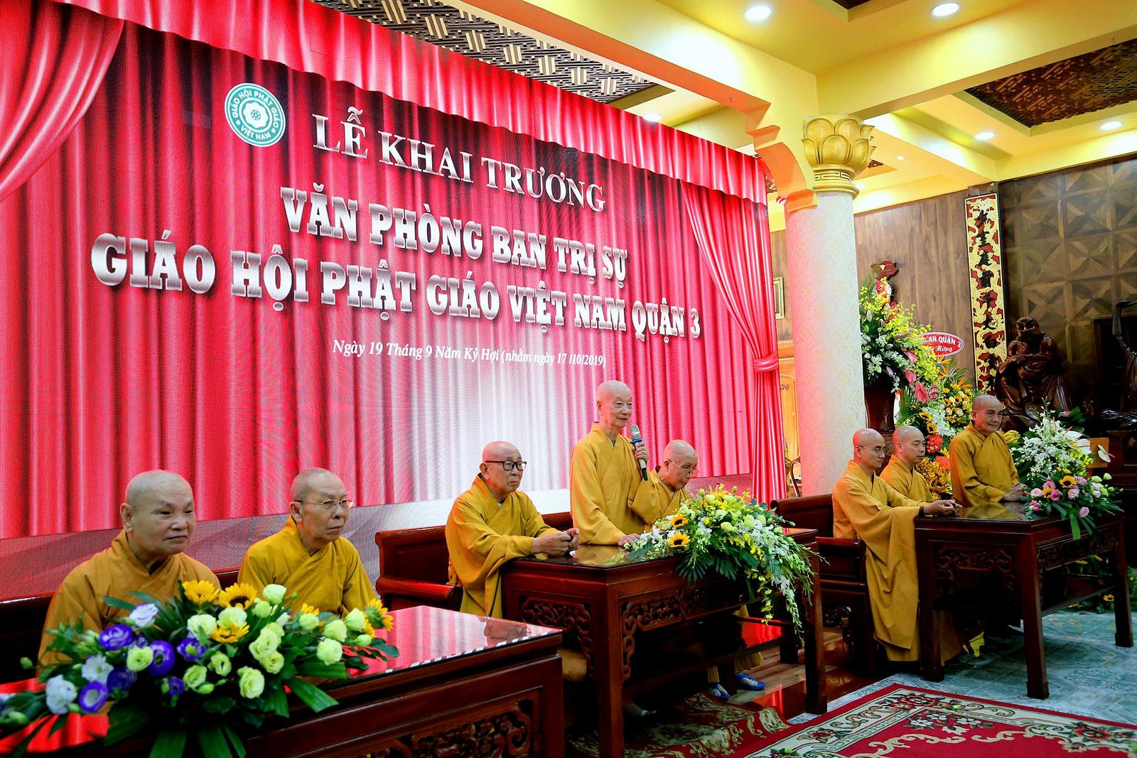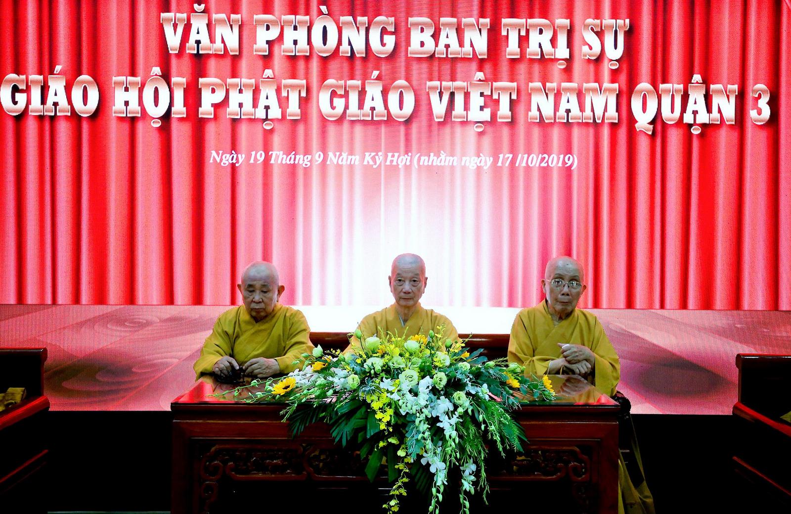 Tại buổi lễ, HT.Thích Trí Quảng – Đệ nhất Phó Pháp chủ kiêm Giám luật HĐCM GHPGVN, Trưởng Ban Trị sự GHPGVN TP.HCM tán thán và ghi nhận những nỗ lực của chư tôn đức lãnh đạo PG Quận 3. Hòa thượng hy vọng với sự cải tiến cơ cấu quản lý cũng như nâng cao về cơ sở vật chất và trang thiết bị văn phòng của hệ thống hành chánh điện tử sẽ hỗ trợ cho Tăng Ni tiết kiệm thời gian, nắm bắt và xử lý thông tin một cách kịp thời chính xác, phù hợp với xu hướng phát triển của xã hội ngày nay.