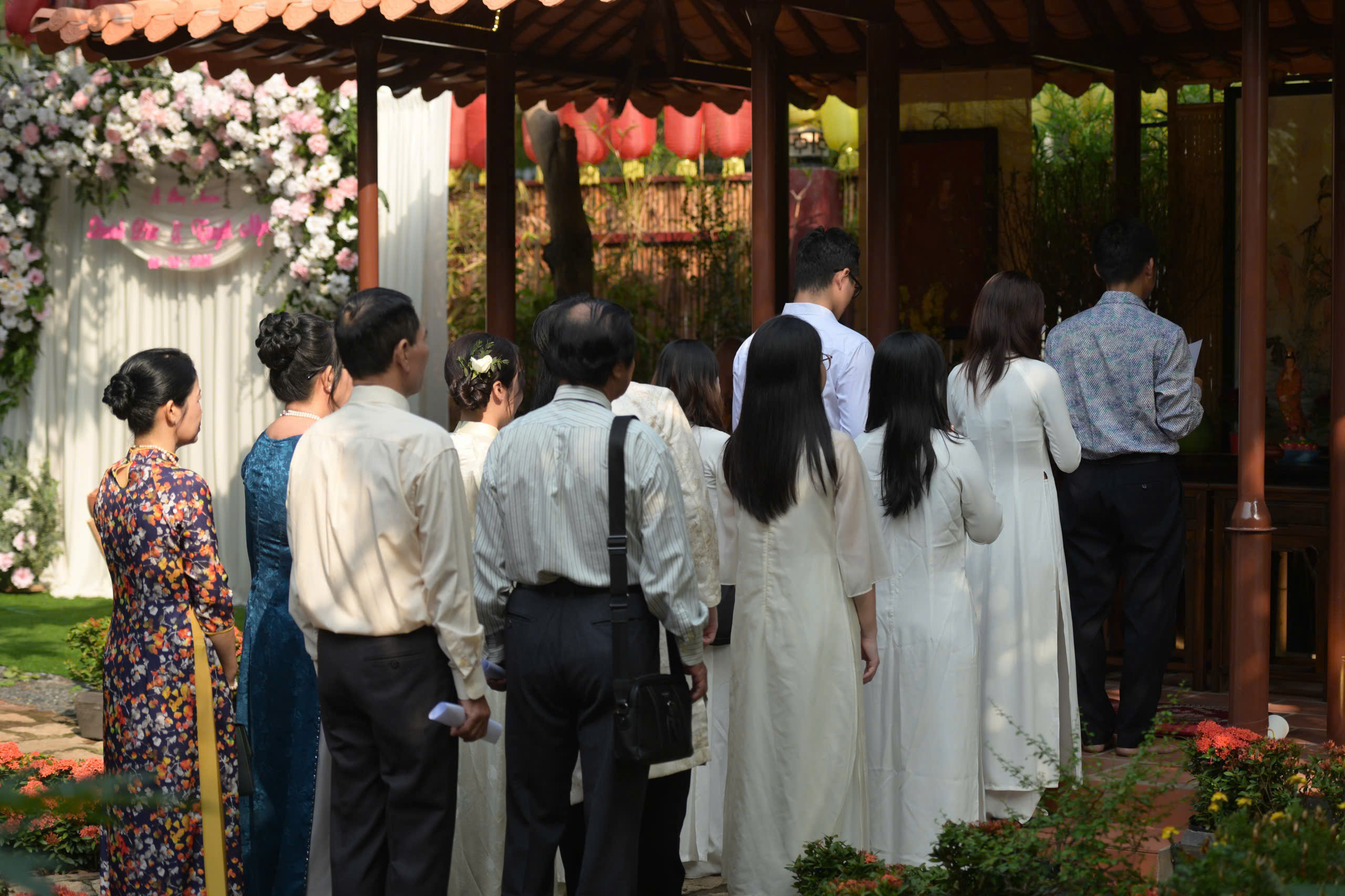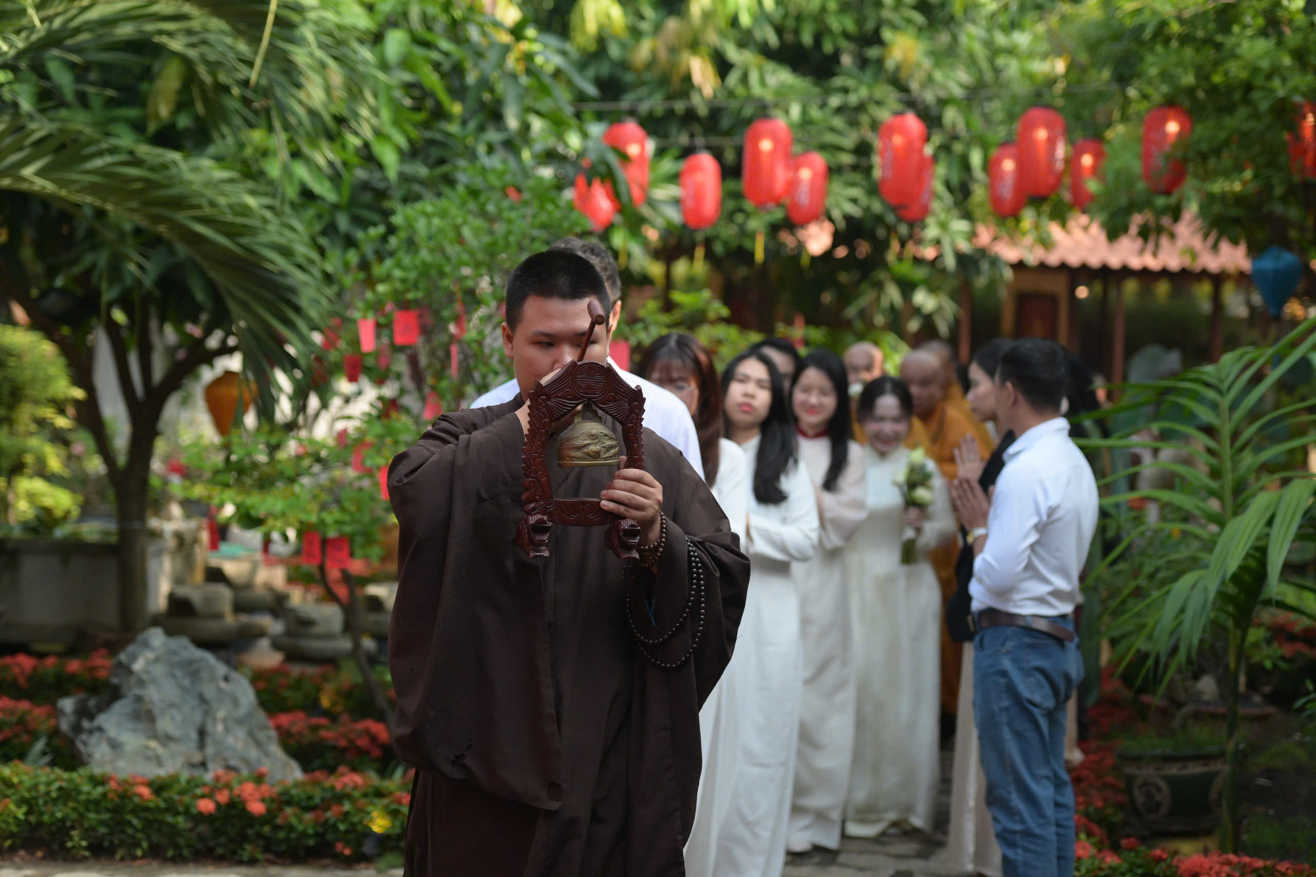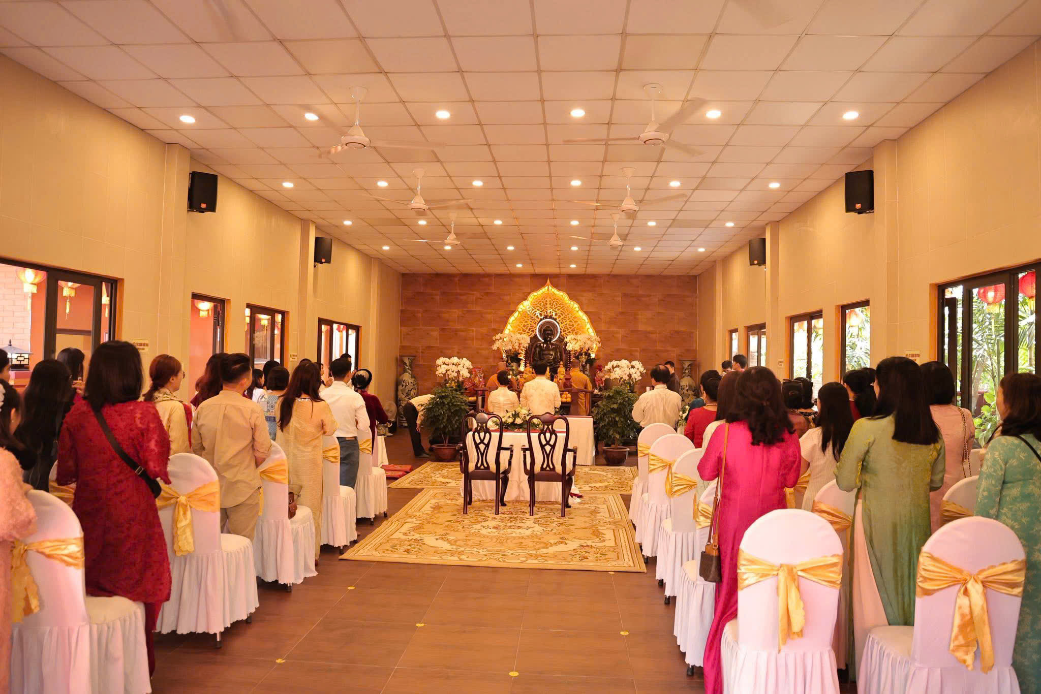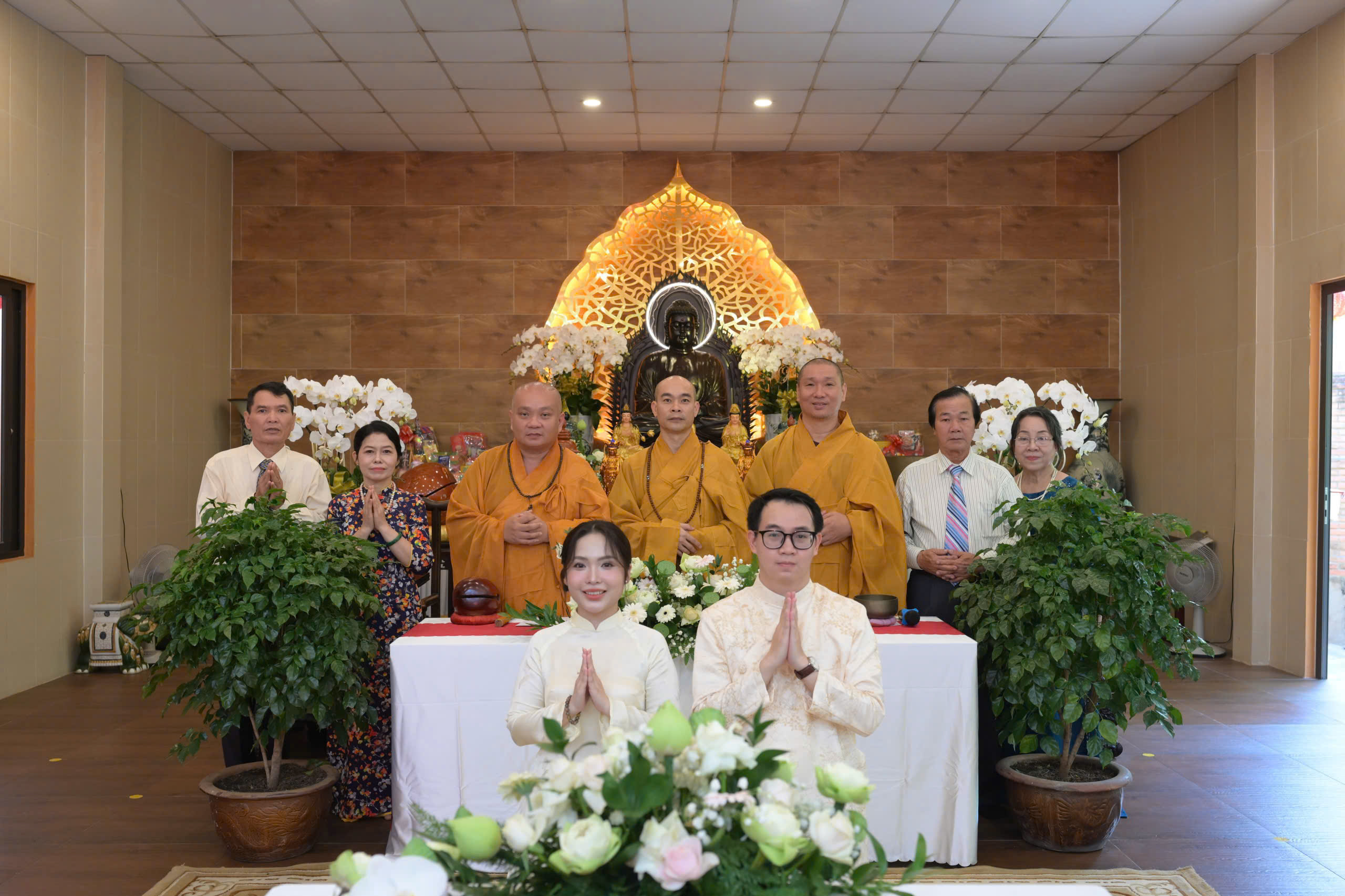 Buổi lễ có sự chứng minh của Thượng tọa Thích Trung Nguyện, trụ trì chùa Bảo Tâm; Thượng tọa Thích Hạnh An, trụ trì chùa Giác Ngạn; Thượng tọa Thích Minh Thuận, trụ trì chùa An Hòa; cùng sự hiện diện của cha mẹ hai bên gia đình, thân bằng quyến thuộc của tân lang, tân nương và đông đảo Phật tử tại chùa An Hòa.