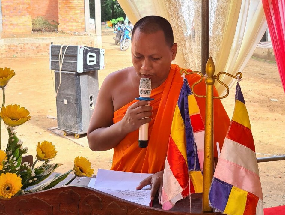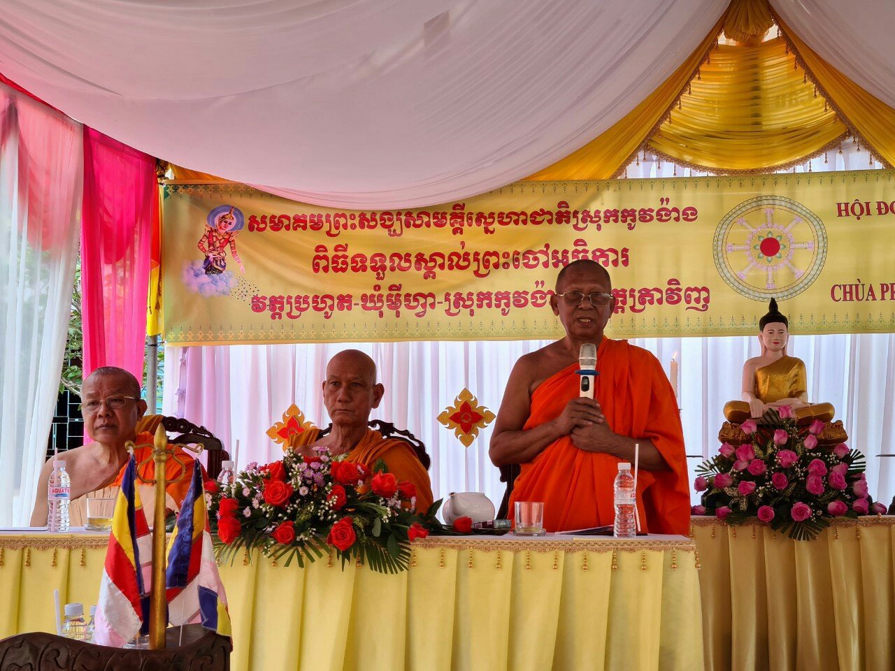 Tại buổi lễ, TT. Thạch Rây – Chủ tịch Hội ĐKSSYN huyện, phát biểu bày tỏ niềm hân hoan đón tiếp nhị vị Hòa thượng BTS PG tỉnh, Mêkon PG tỉnh, cùng quý đại biểu đến tham dự góp phần cho buổi lễ thêm phần viên mãn.